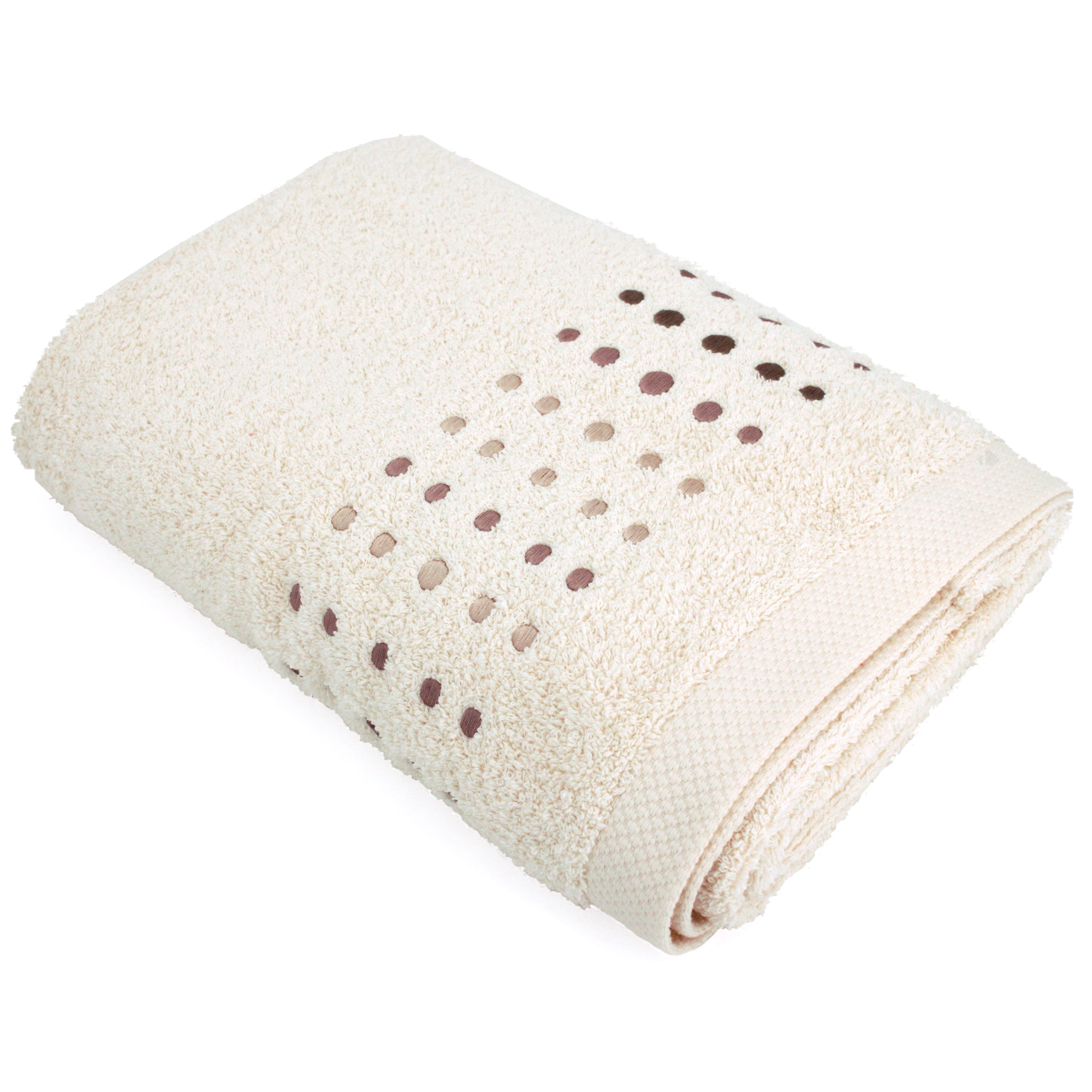 | Plus produit | Drap de bain 100x150 cm PURE POINTS, éponge 100% coton 550 g/m2, broderies - Beige - Fabriqué au Portugal |