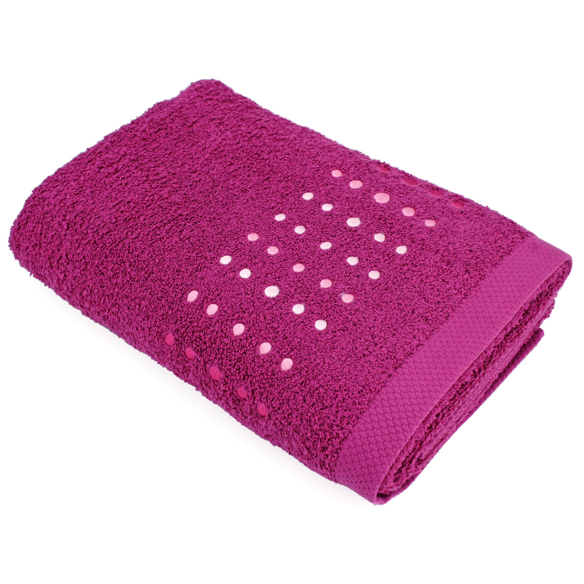 | Plus produit | Drap de bain 100x150 cm PURE POINTS, éponge 100% coton 550 g/m2, broderies - Violet Prune - Fabriqué au Portugal |