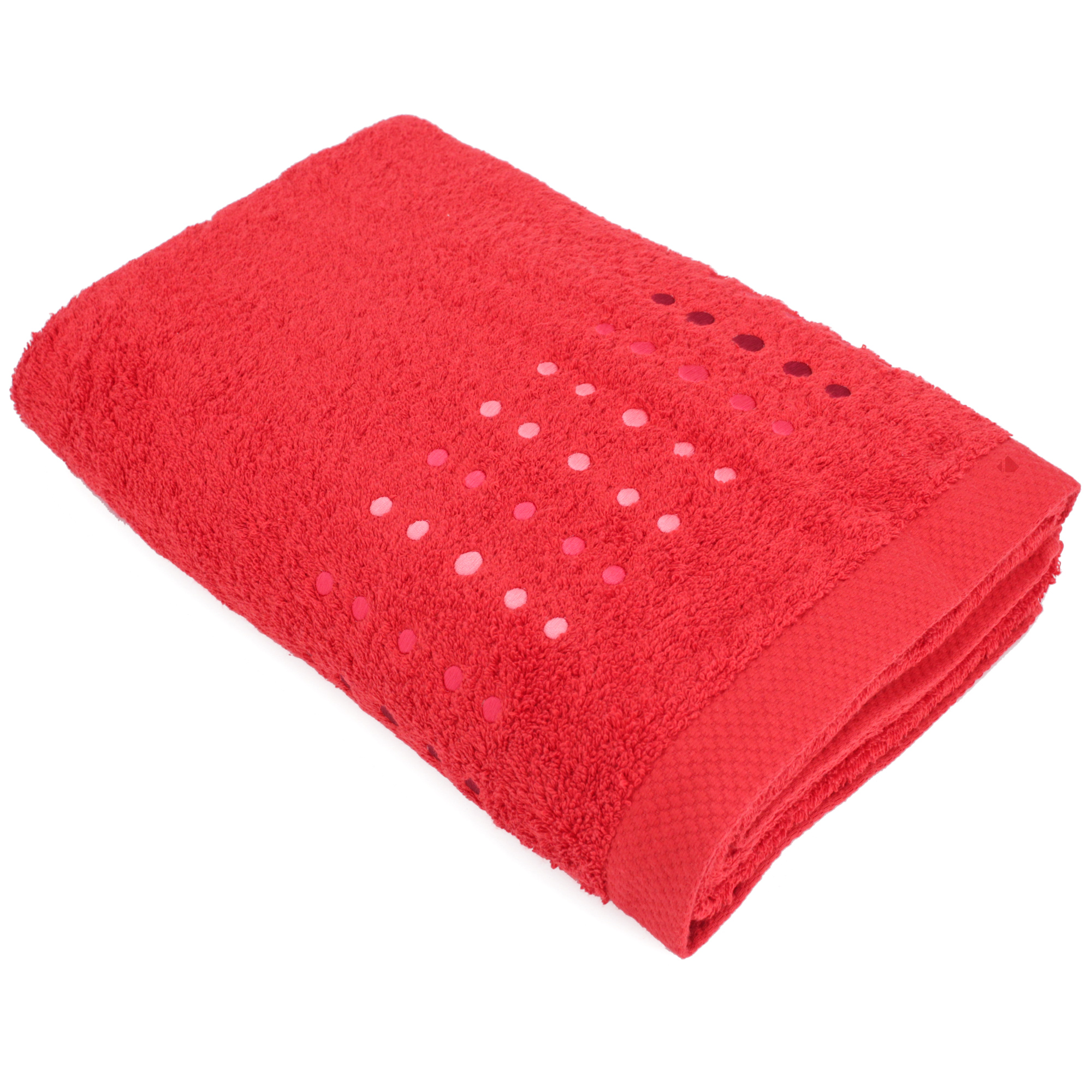 | Plus produit | Drap de bain 100x150 cm PURE POINTS, éponge 100% coton 550 g/m2, broderies - Rouge - Fabriqué au Portugal |