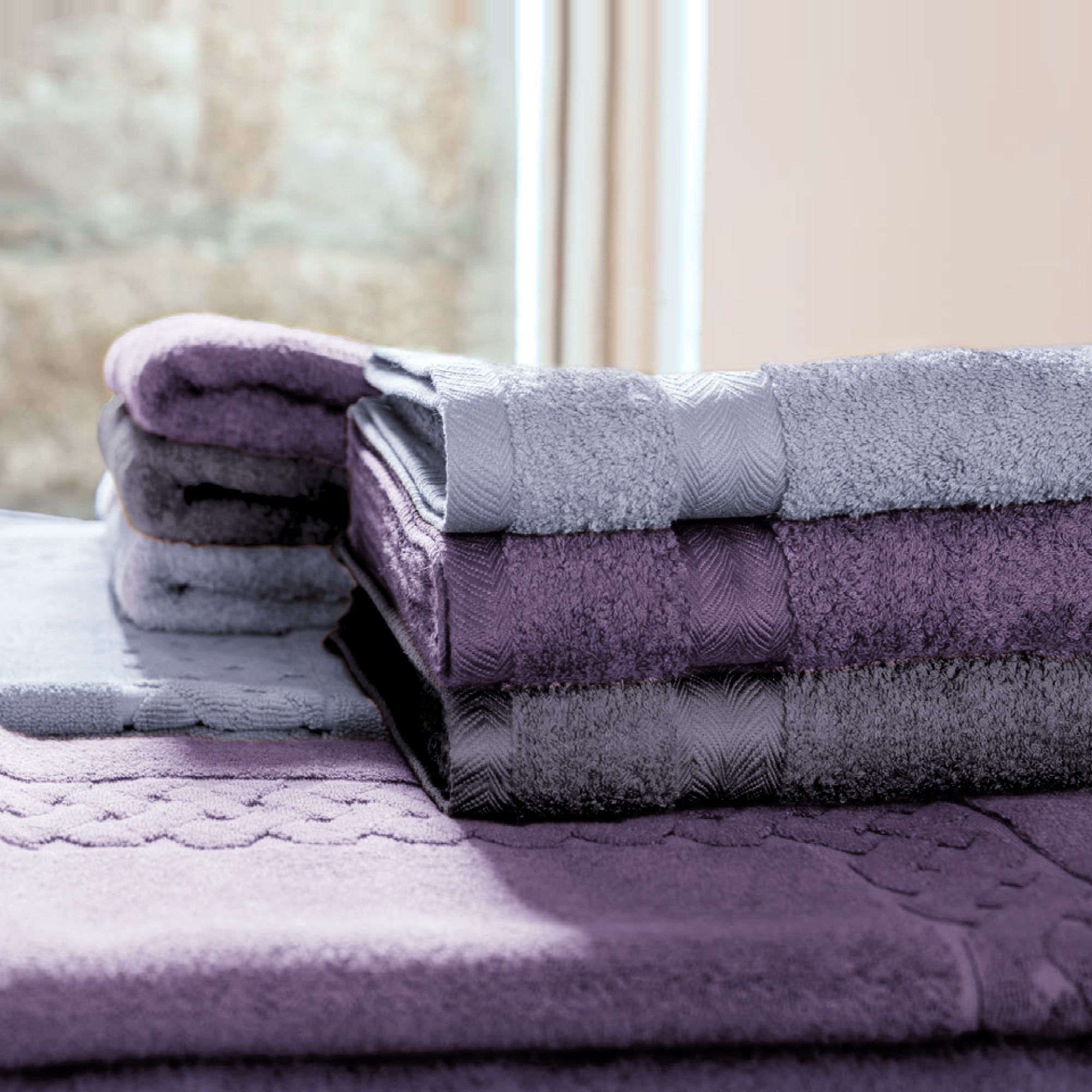 Ce drap de bain au style épuré est disponible en plusieurs coloris.