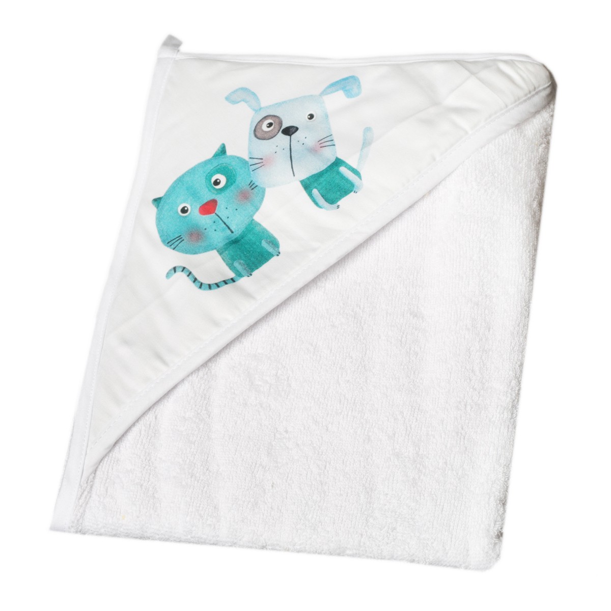 Drap de bain serviette toilette cape bébé Blanc Dog and Cat