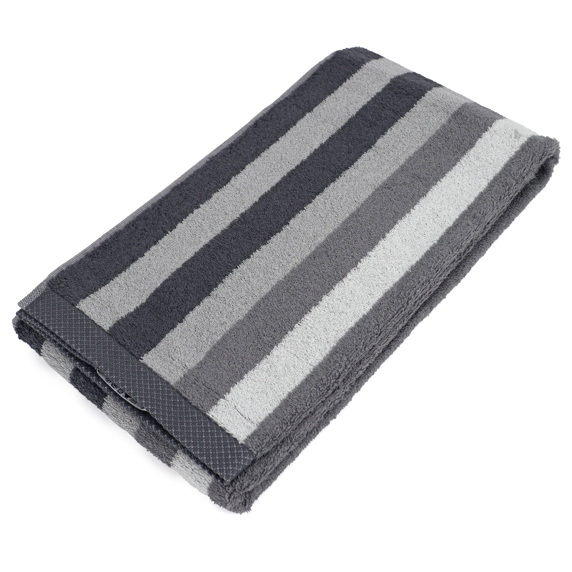 | Plus produit | Drap de douche PURE STRIPES gris anthracite 70x140cm. En 100% coton 500 g/m2 et avec ses deux faces bouclette éponge, il garantit une absorption optimale. |