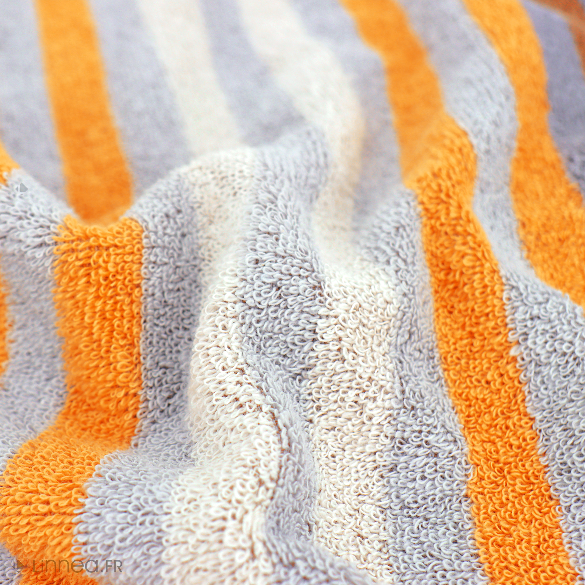 | Plus produit | Drap de douche PURE STRIPES orange butane 70x140cm. En 100% coton 500 g/m2 et avec ses deux faces bouclette éponge, il garantit une absorption optimale. |