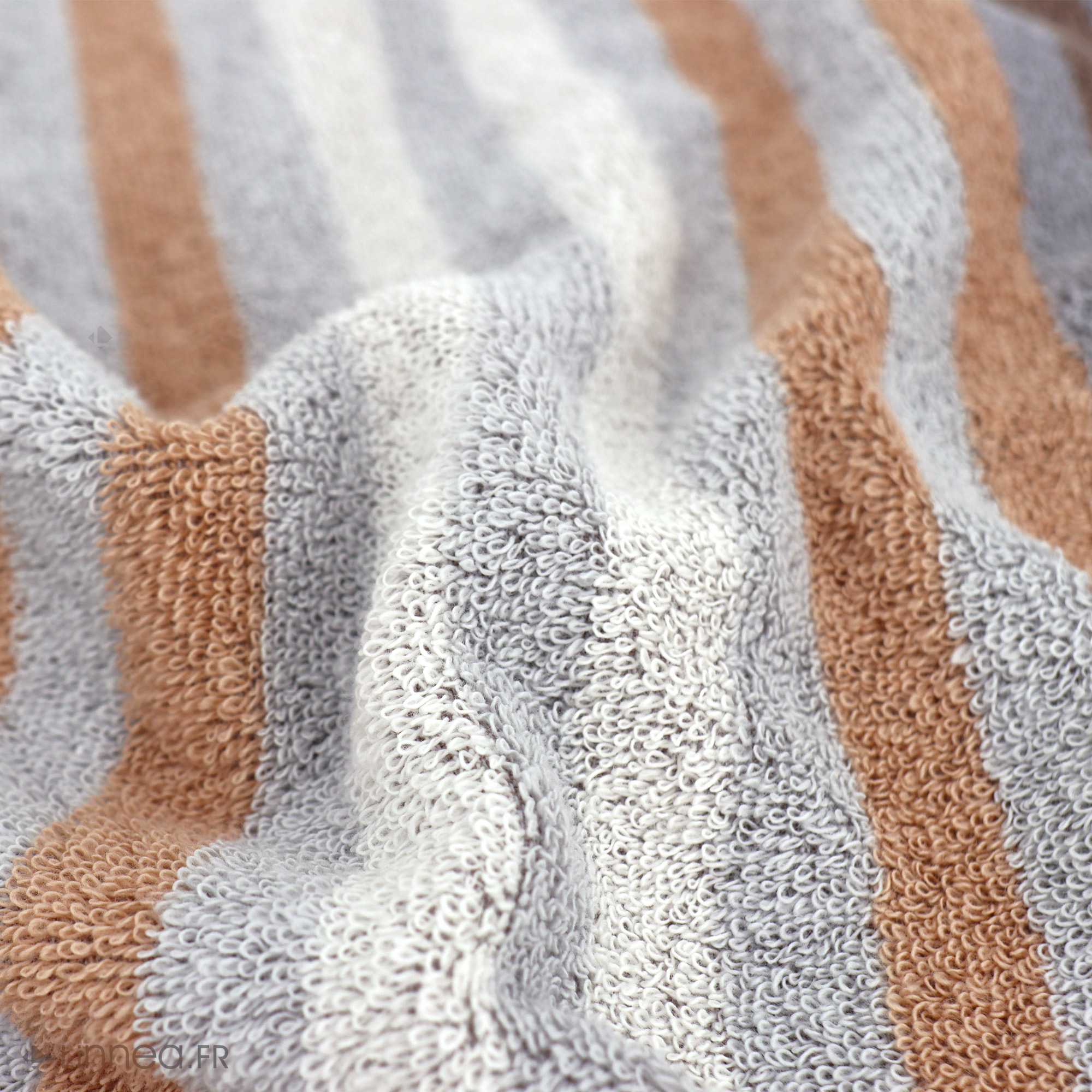 | Plus produit | Drap de douche PURE STRIPES beige 70x140cm. En 100% coton 500 g/m2 et avec ses deux faces bouclette éponge, il garantit une absorption optimale. |