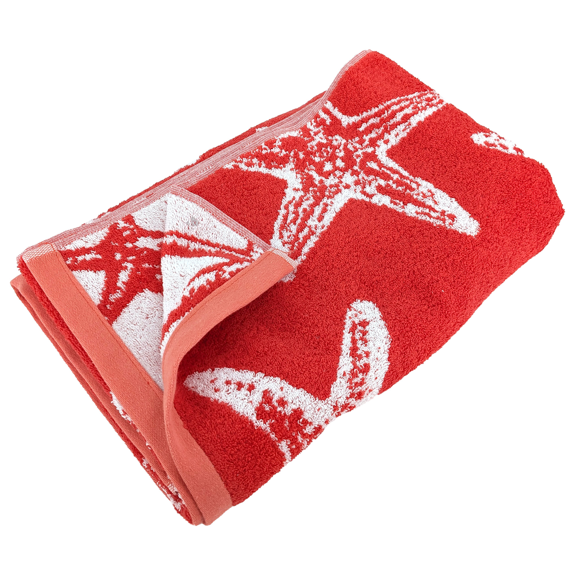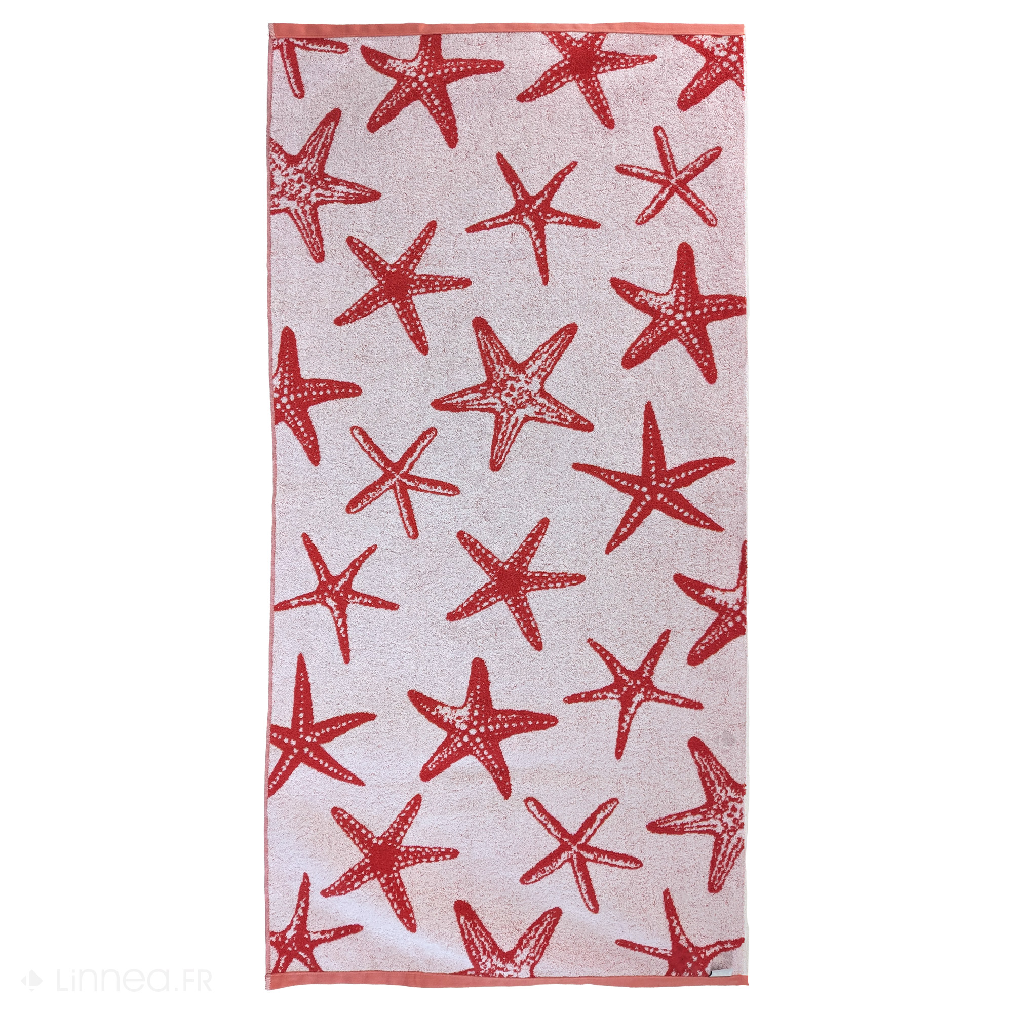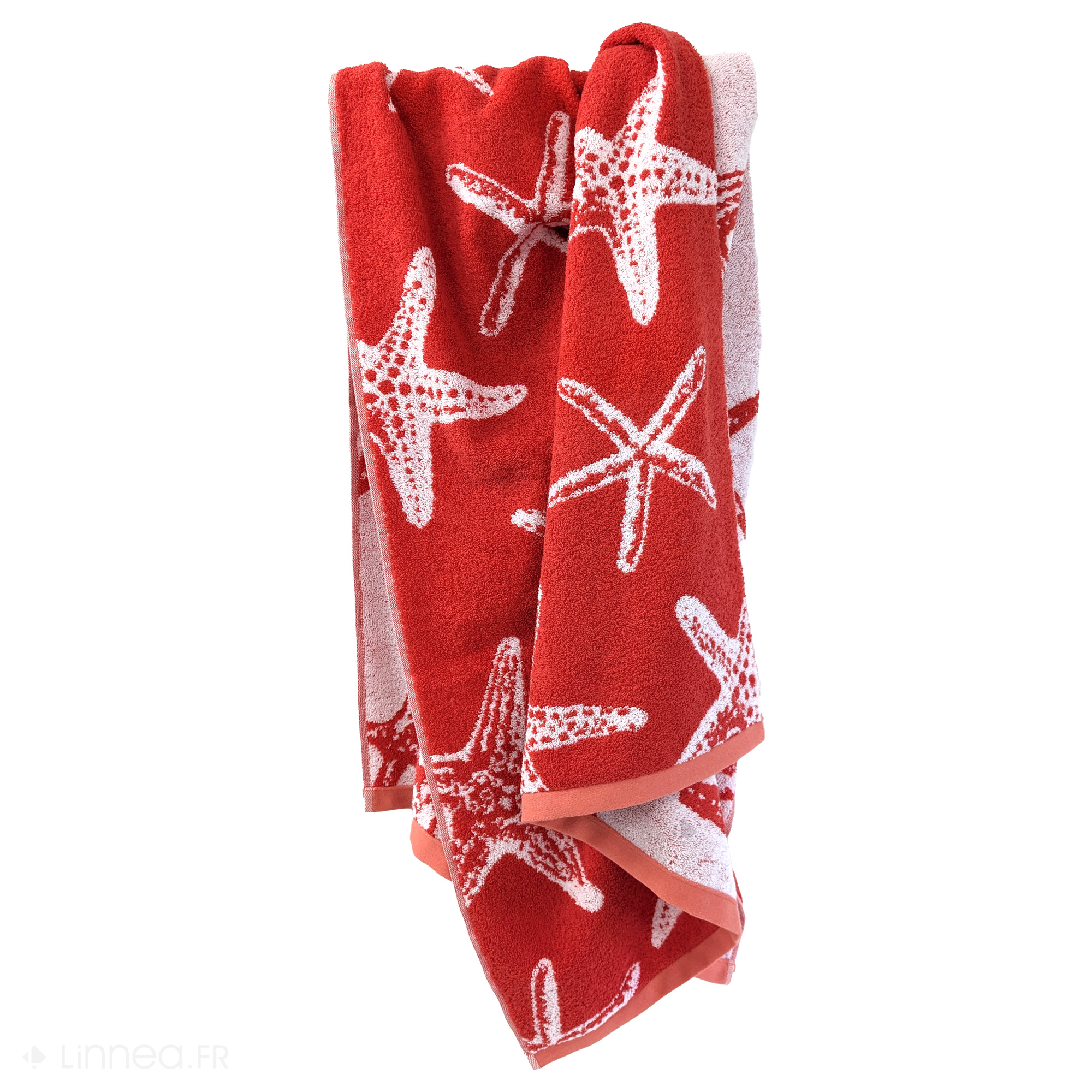 D'une couleur rouge orangée éclatante, ce drap de plage est orné d'étoiles de mer blanches éparpillées sur toute sa surface, évoquant instantanément la magie des vacances à la plage. Fabriqué à partir de 100% coton de haute qualité avec des fils simples, il offre une douceur et une absorption exceptionnelles, garantissant confort et commodité à chaque utilisation.
