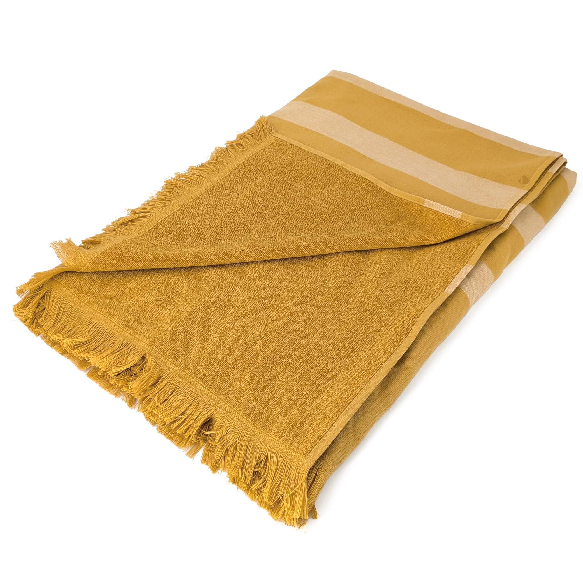 Drap de plage 100x180 cm pur coton CATANE jaune moutarde
