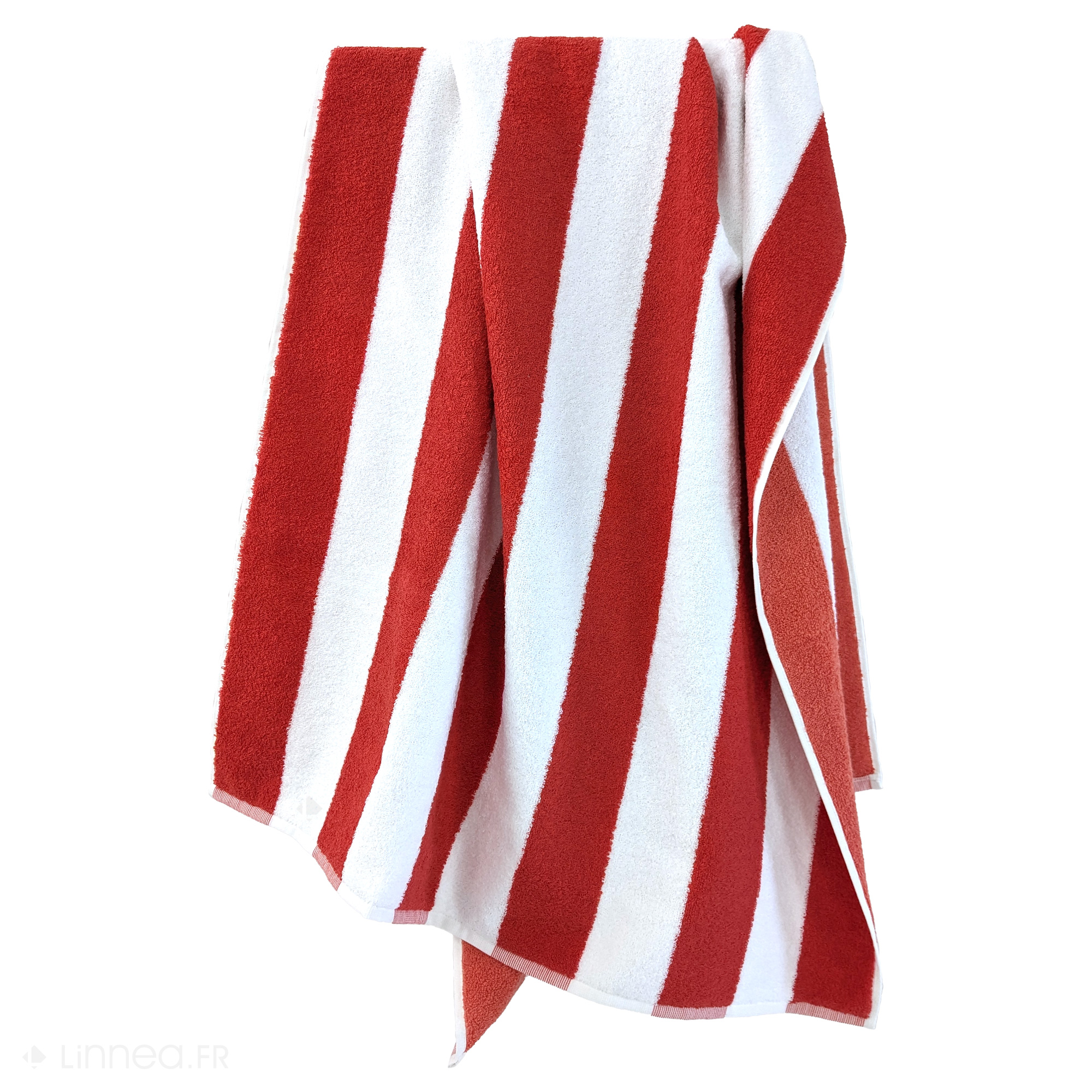 Drap de plage à rayures 75x150 cm 100% coton collection ELBE rouge
