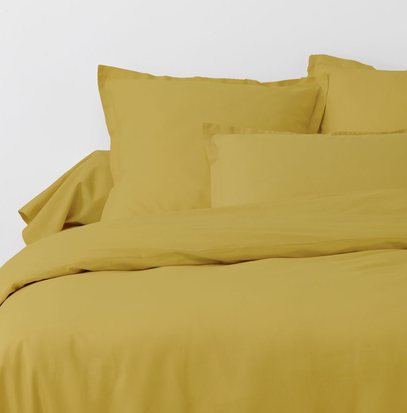 Drap housse 100% Coton 57 fils avec bonnet Couleur Jaune,Taille 160 x 200 cm