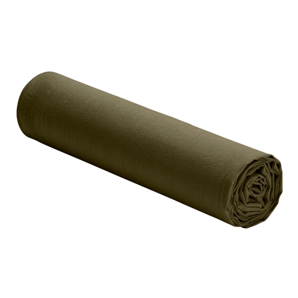 Drap housse 100% Lin Lavé Taille 140 x 190 cm Couleur Olive