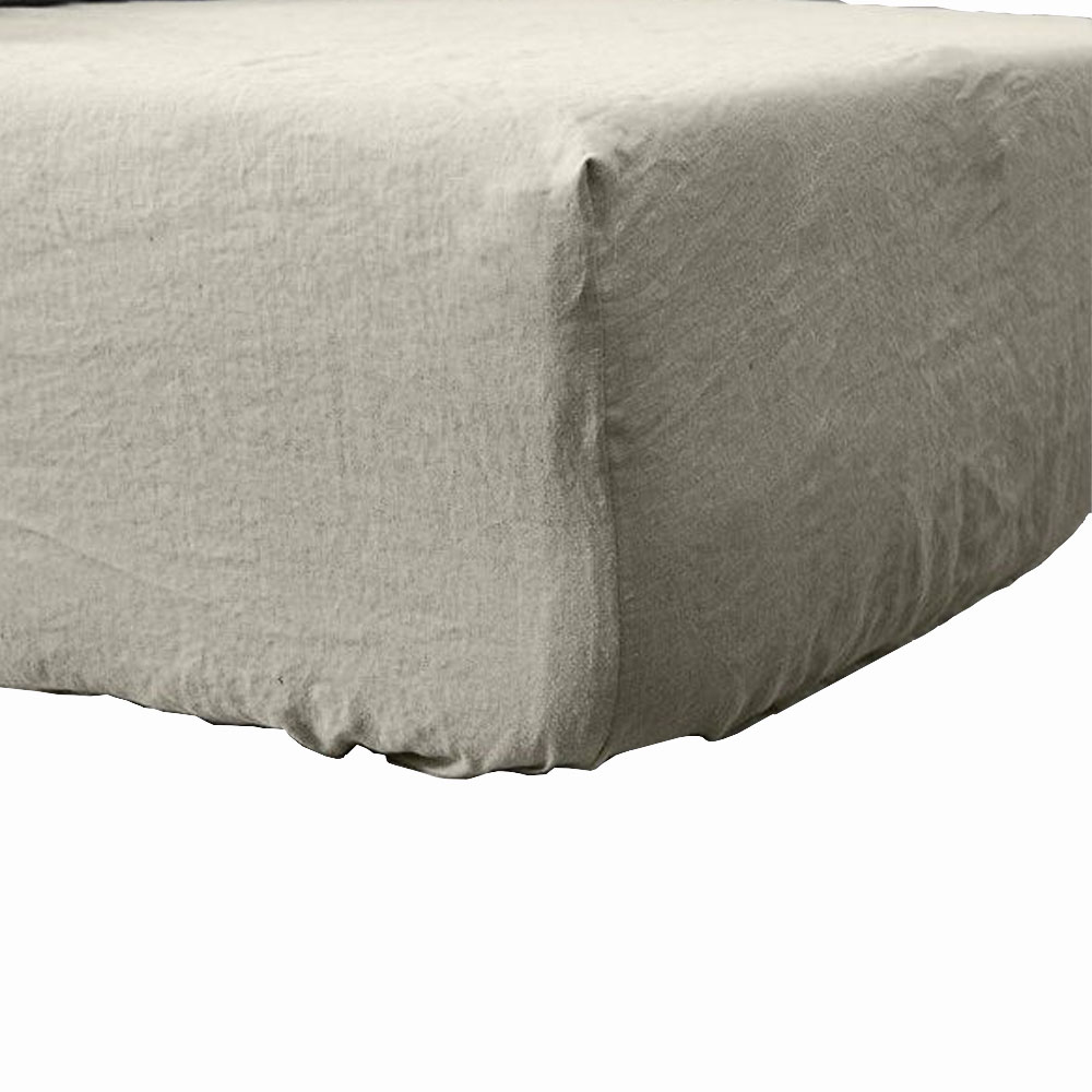 Drap housse 100% Lin Lavé Taille 160 x 200 cm Couleur Sable