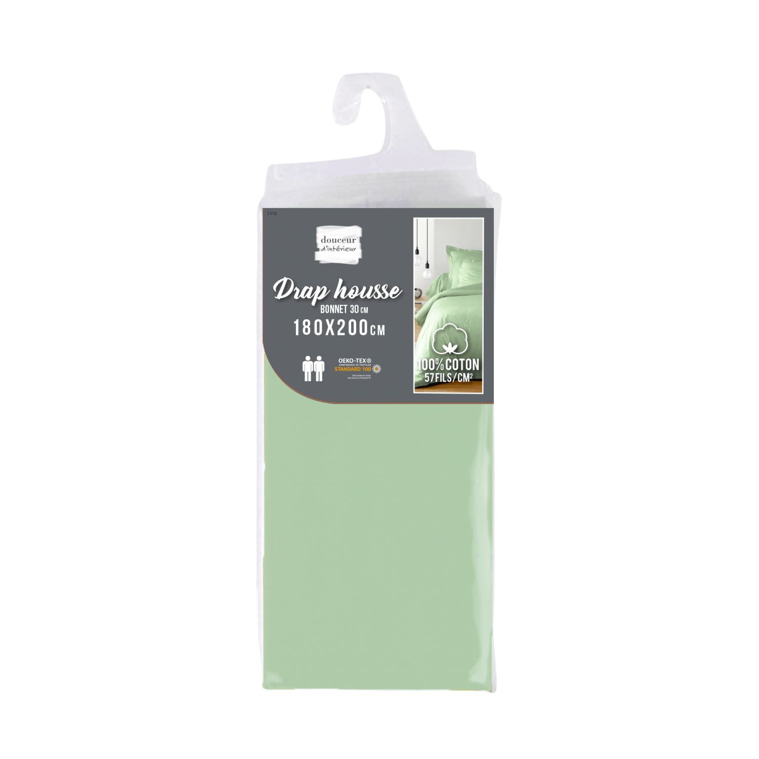 | Libellé | Drap housse - 180 x 200 cm - Grand bonnet - 57 fils - Uni |