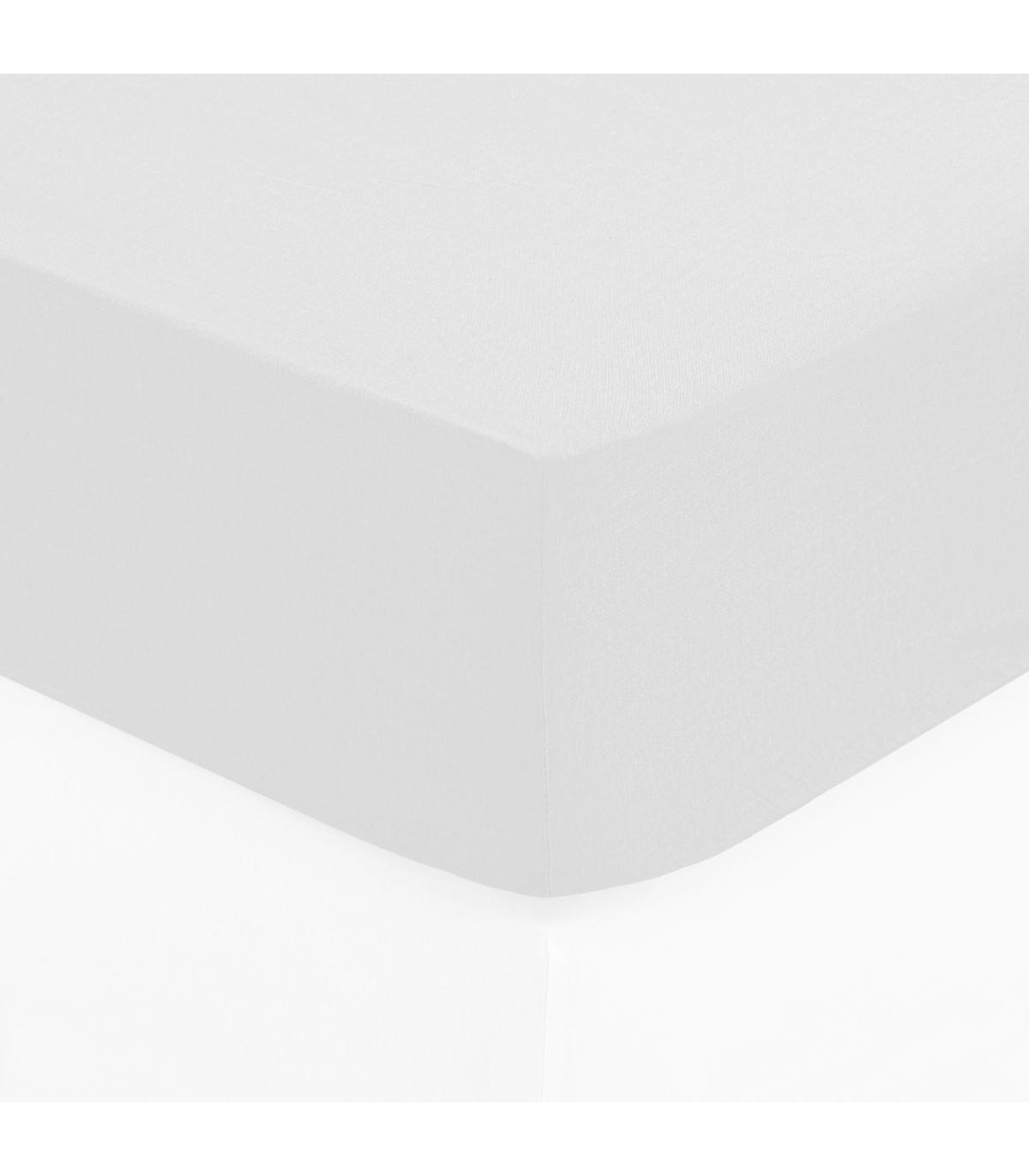 Drap housse 2 Personnes en Coton Blanc 160 x 200 cm