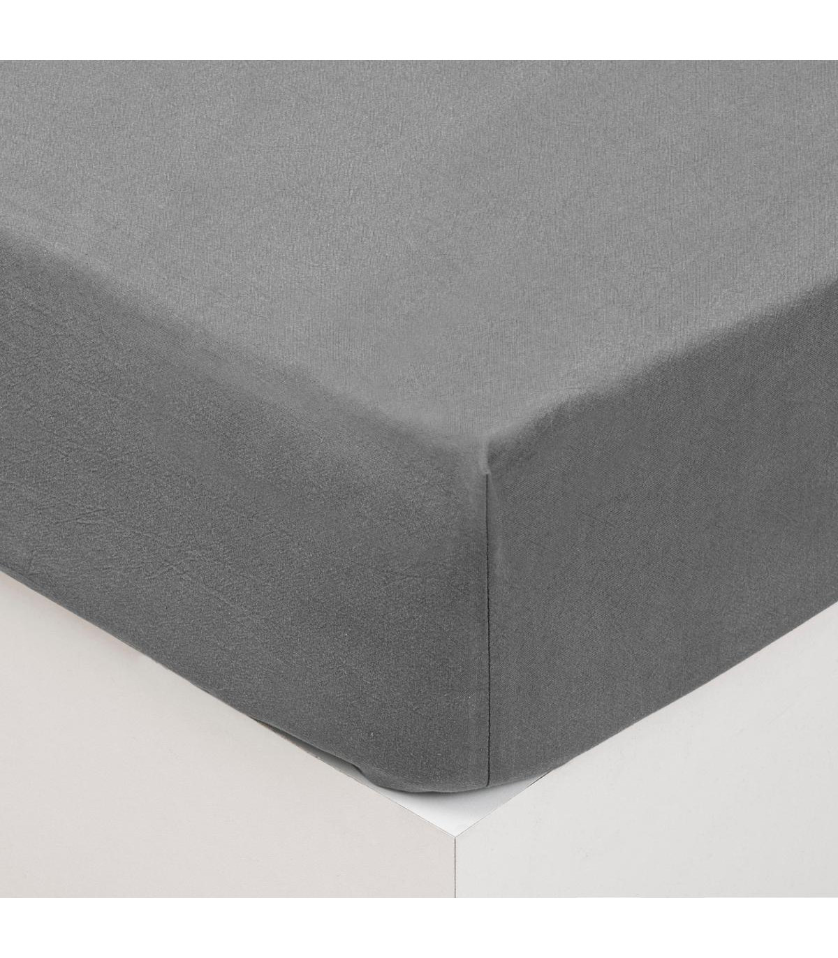 Drap housse 2 Personnes en Coton lavé Gris 160 x 200 cm