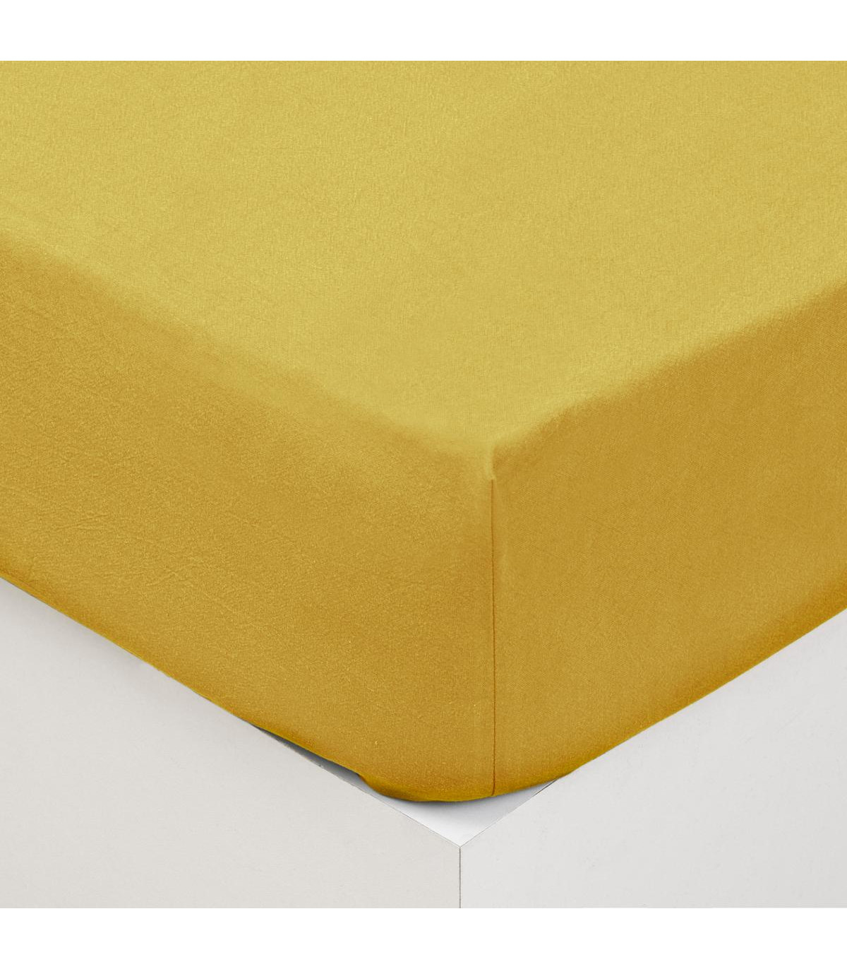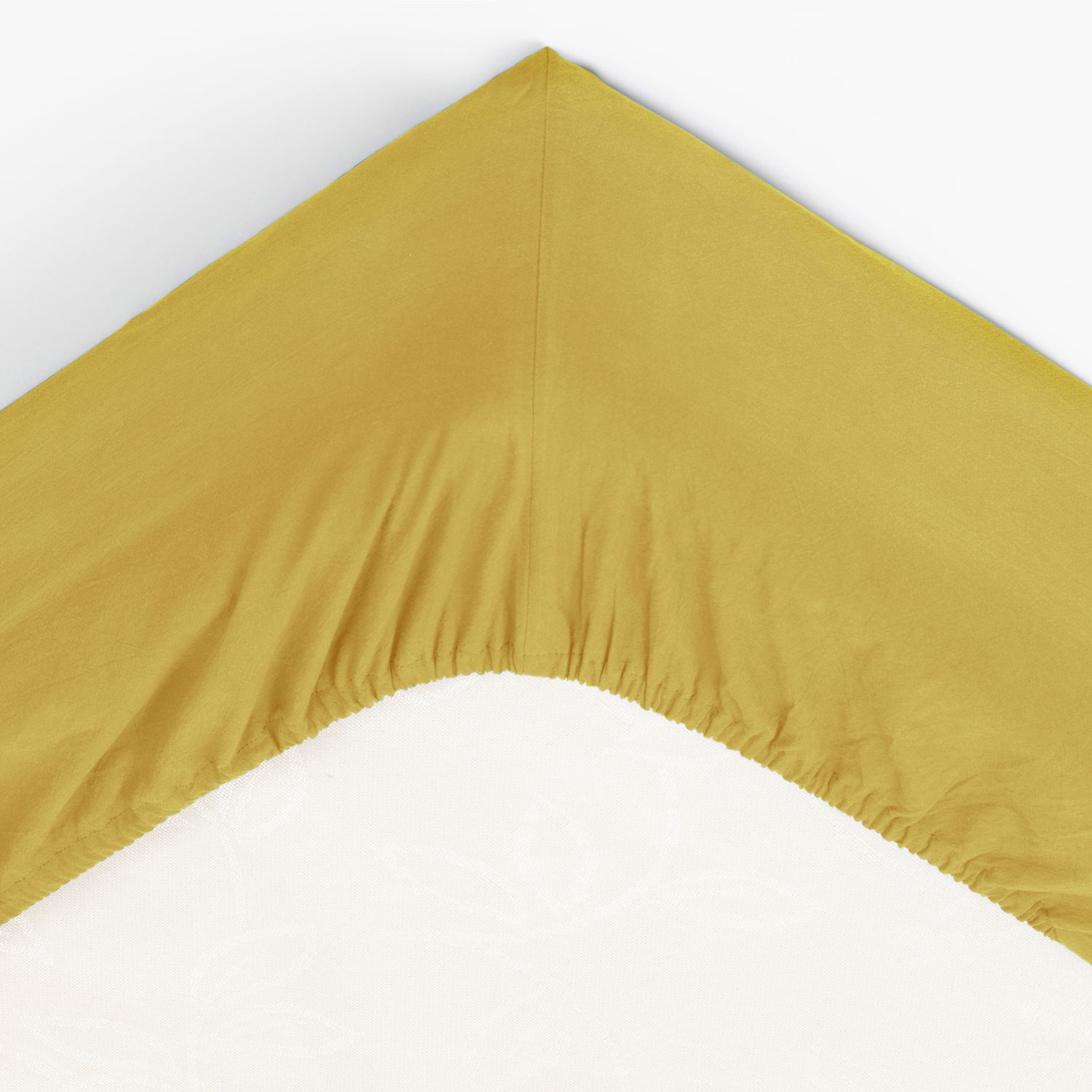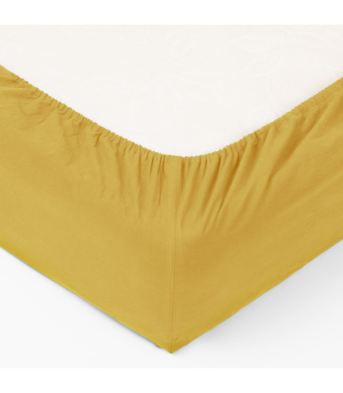 Drap housse 2 Personnes en Coton lavé Ocre 140 x 190 cm