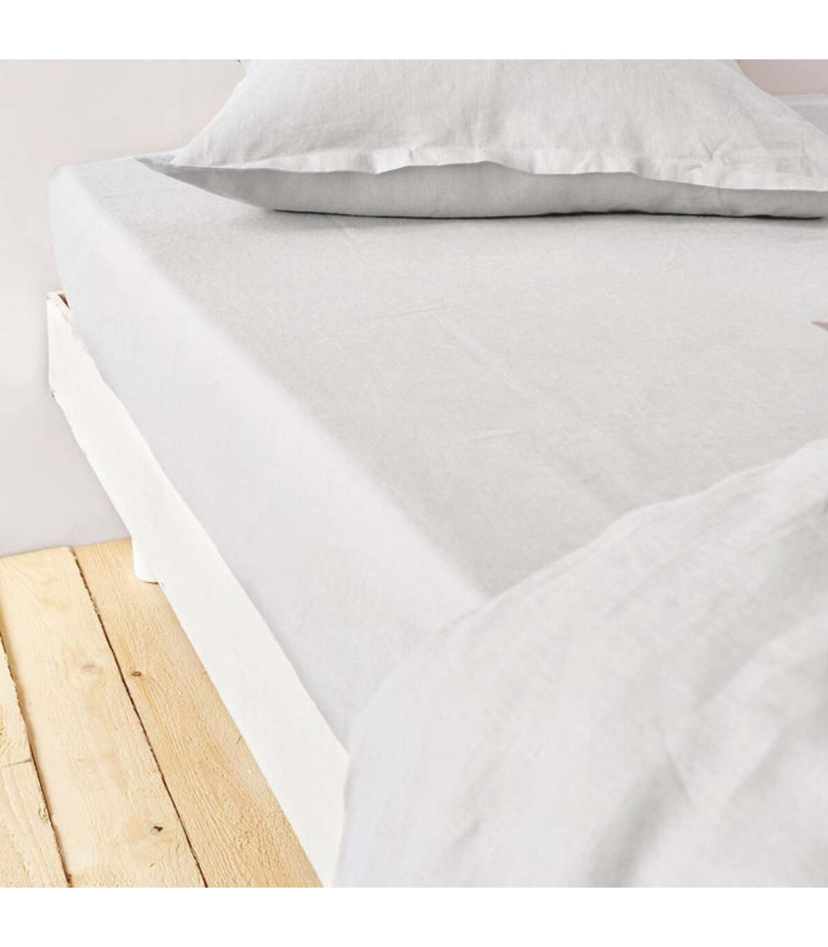 Drap housse 2 Personnes en Lin lavé Blanc Ivoire 160 x 200 cm --