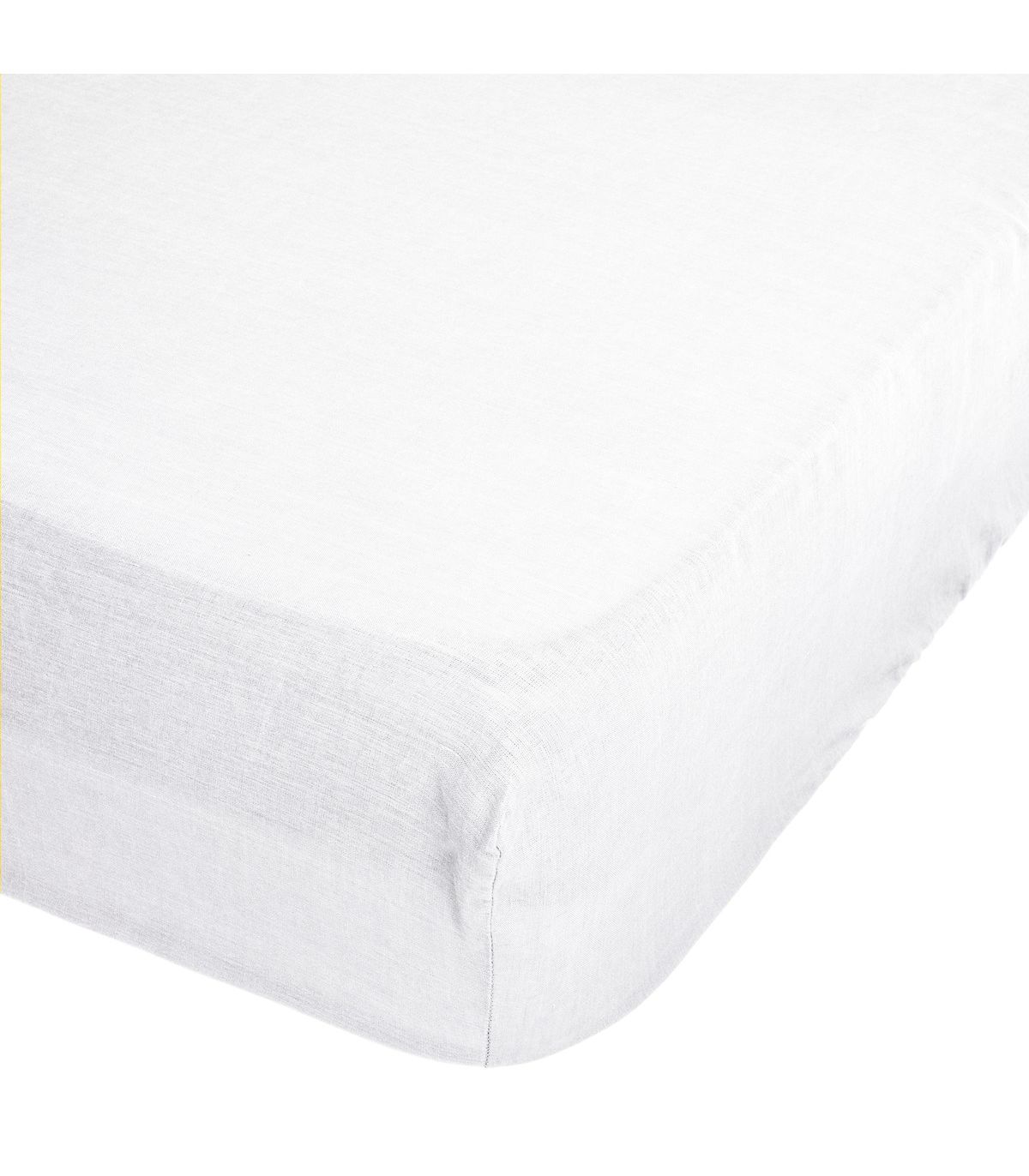 Drap housse 2 Personnes en Lin lavé Blanc Ivoire 160 x 200 cm