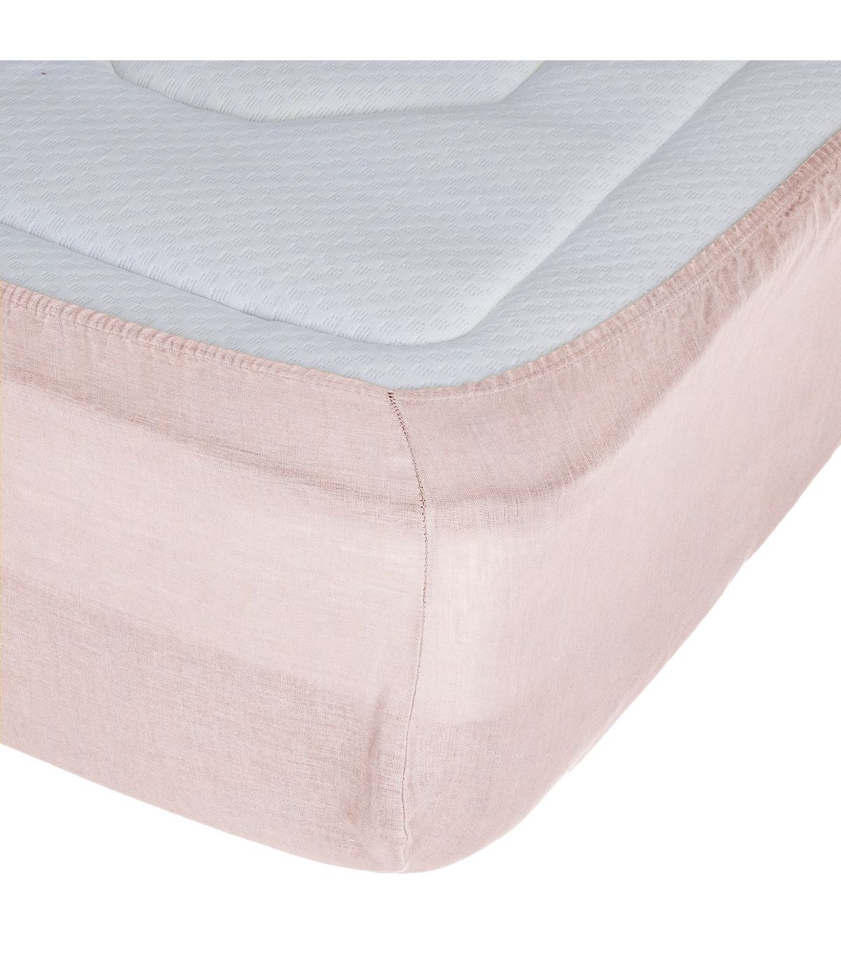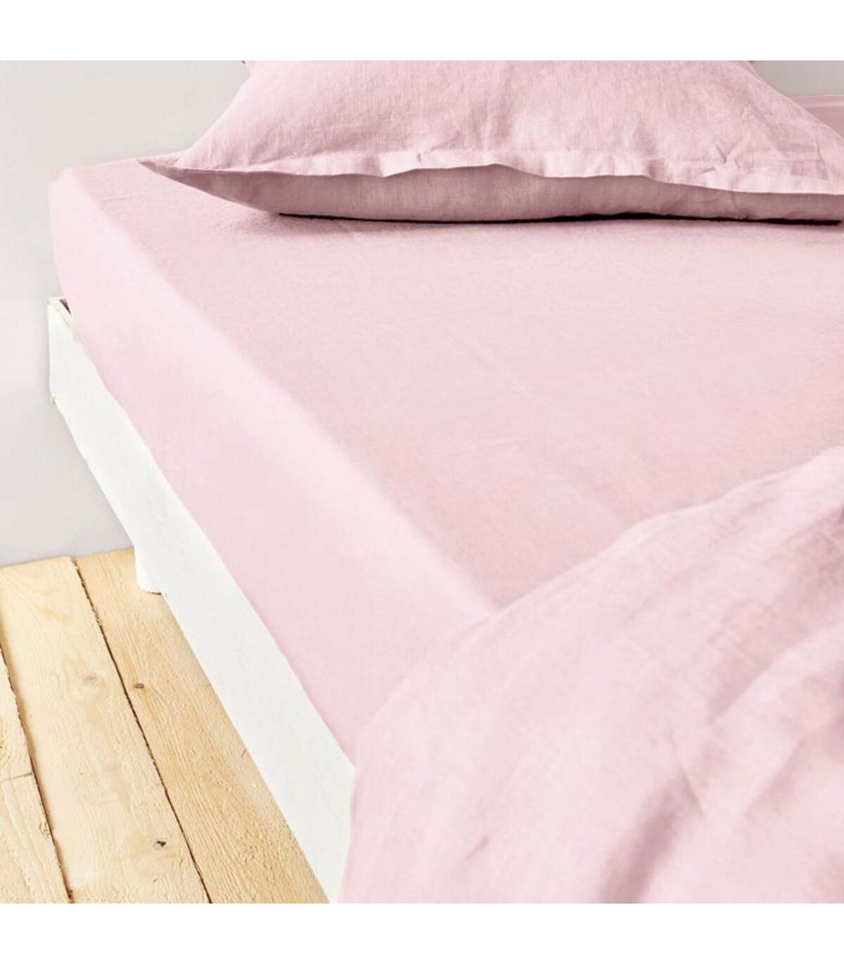 Drap housse 2 Personnes en Lin lavé Rose 160 x 200 cm --
