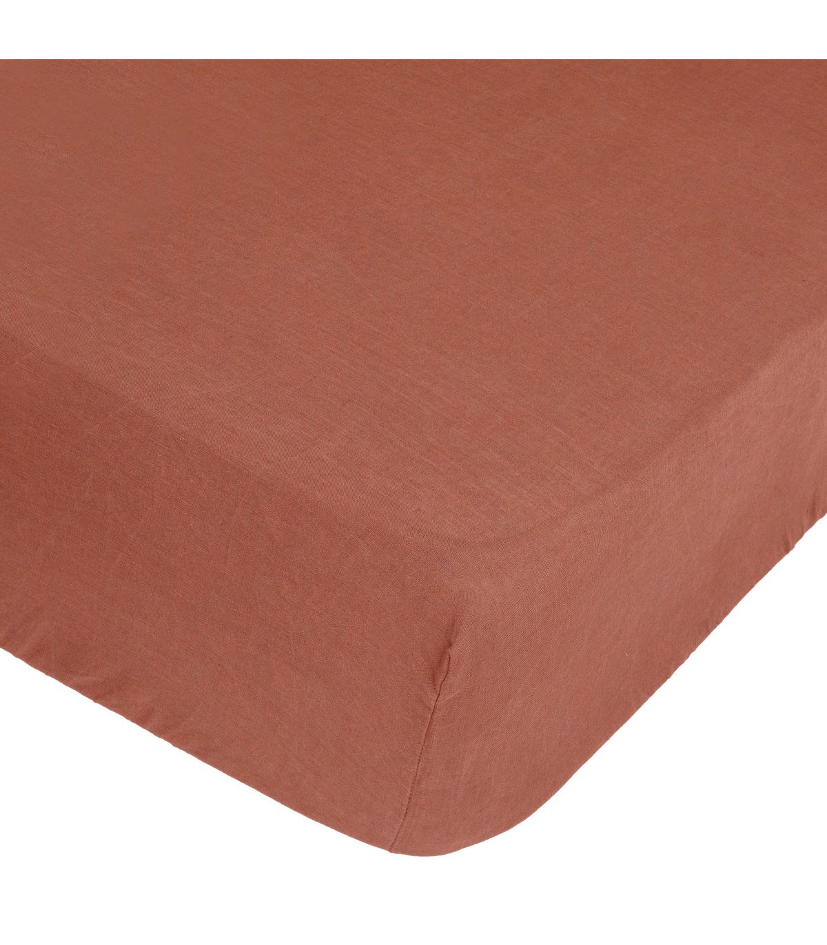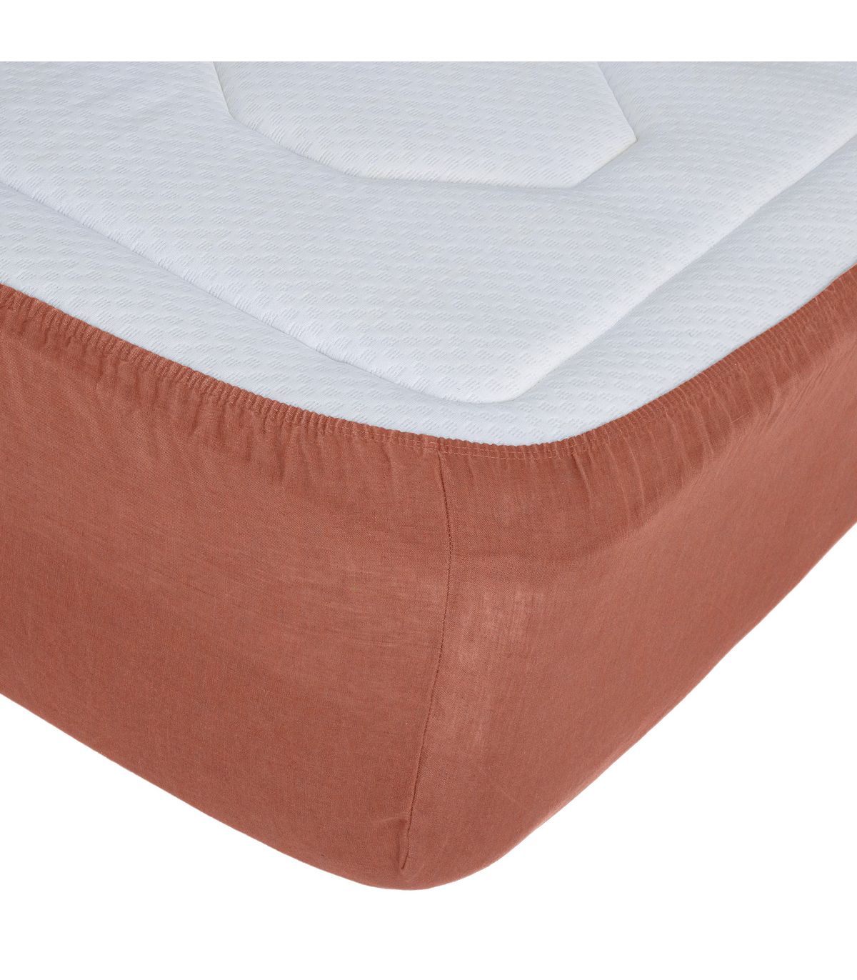 Drap housse 2 Personnes en Lin lavé Terracotta 160 x 200 cm --