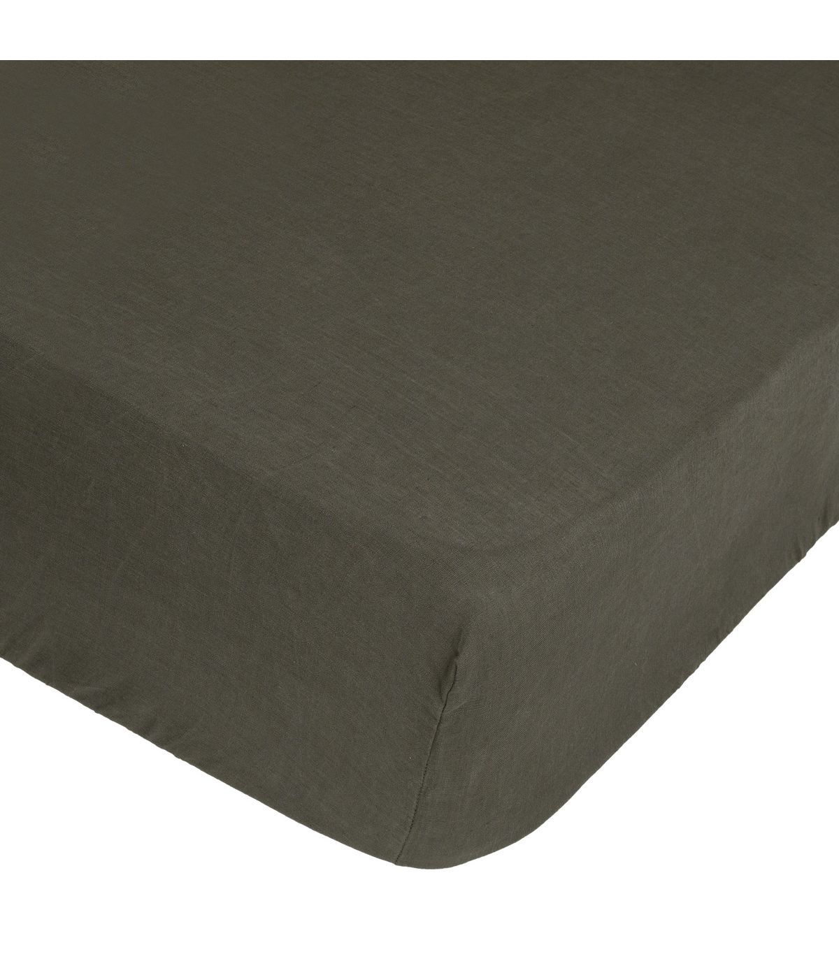 Drap housse 2 Personnes en Lin lavé Vert Kaki 160 x 200 cm