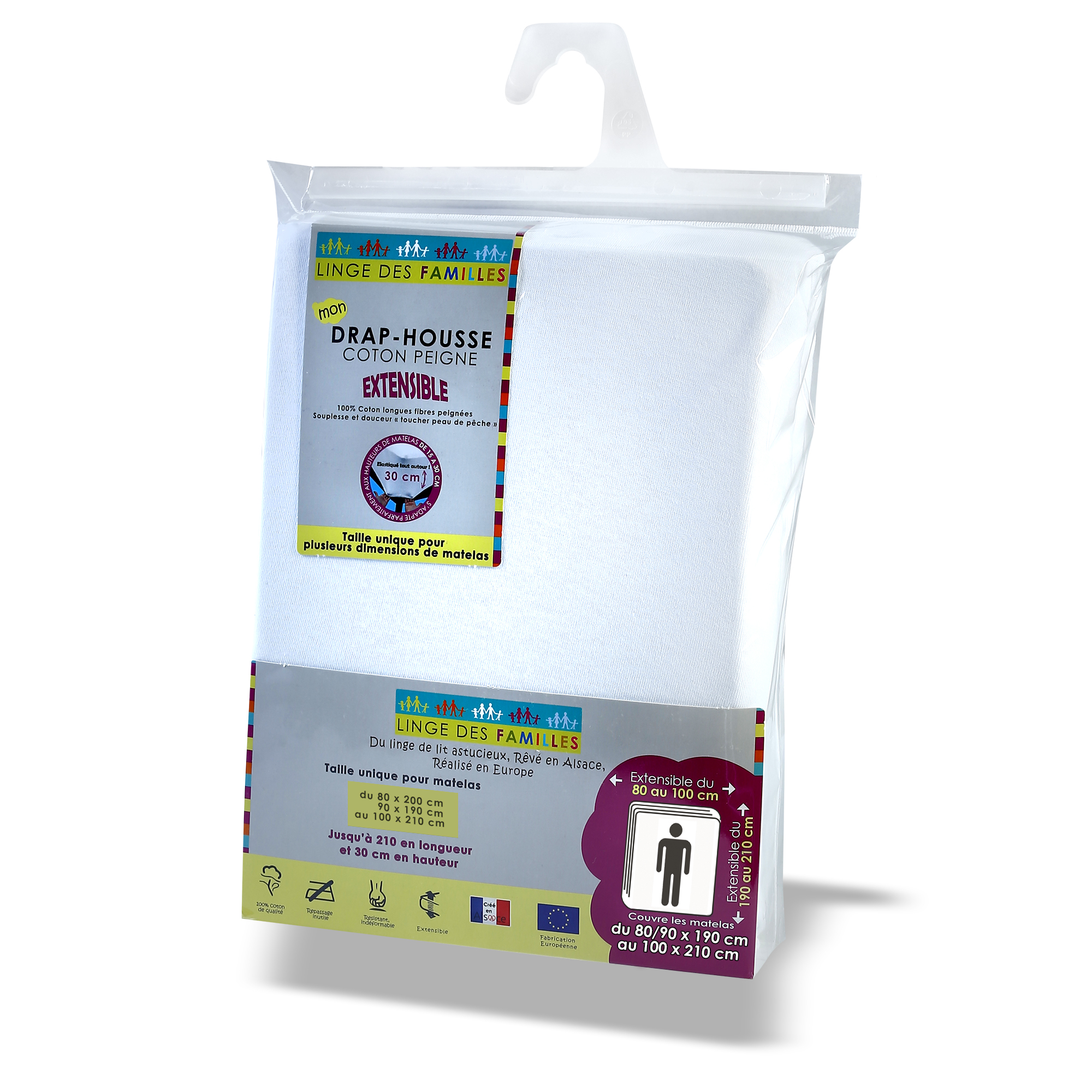 Ce drap-housse en jersey coton est unique en son genre. En effet, son extensibilité lui permet de couvrir plusieurs tailles et de s'adapter à tous types de matelas (scandinave, latex, à mémoire de forme, à ressorts...), et ce quelle que soit leur hauteur. Pratique et résistant du fait de sa composition en coton peigné longues fibres, ce drap-housse est votre meilleur atout si vous avez plusieurs matelas de tailles différentes à couvrir.