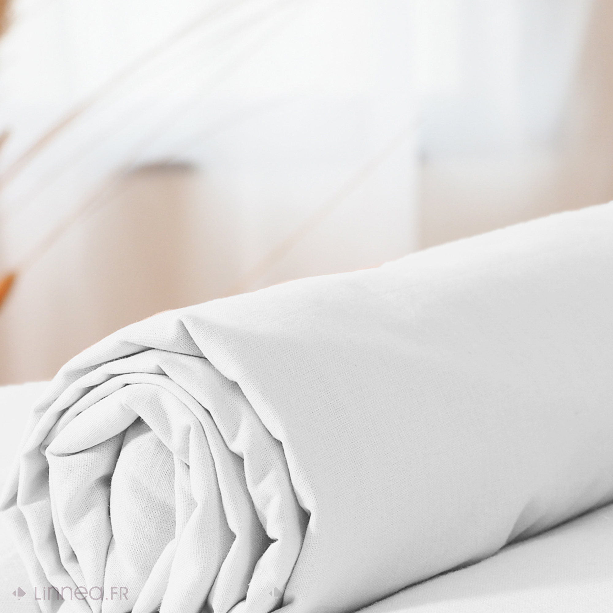| Plus produit | Drap housse 140x190 cm LINO blanc 100% coton lavé 57 fils/cm2 |