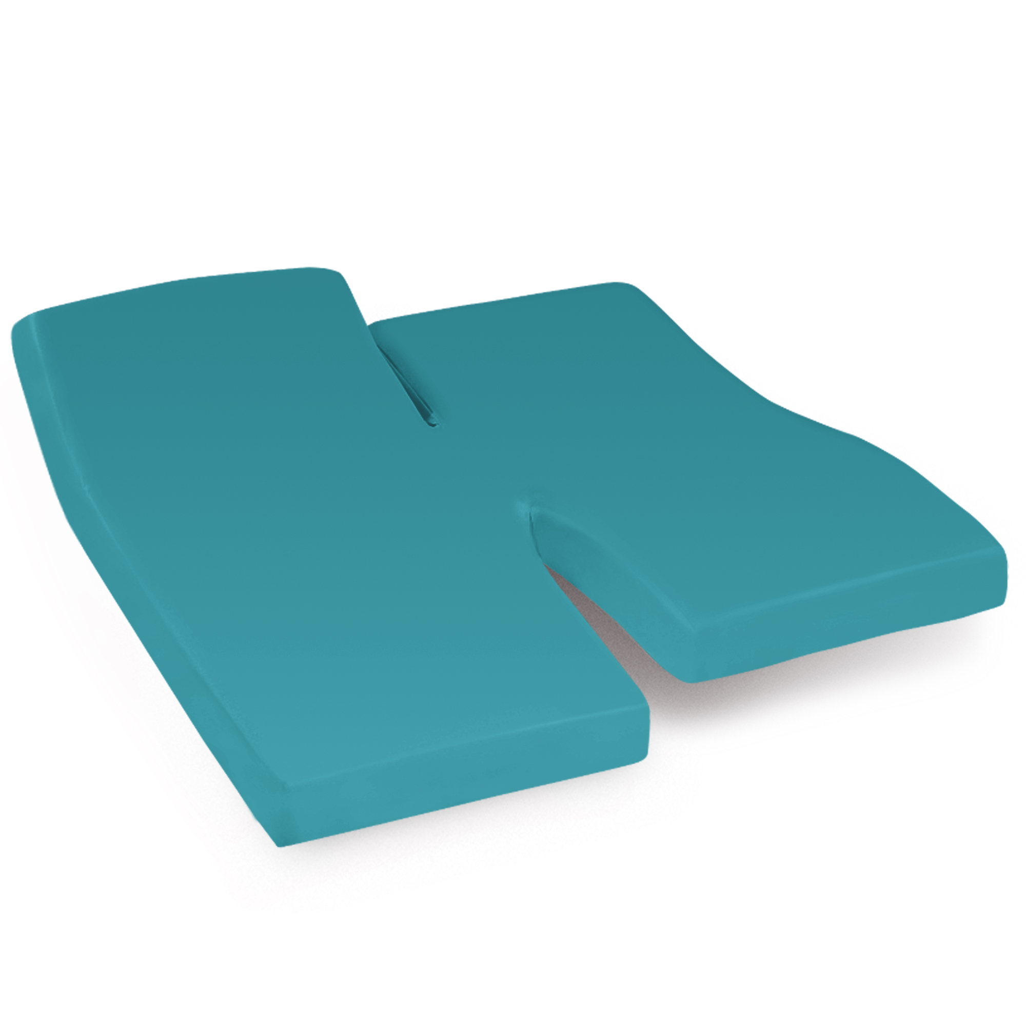- Un drap housse duo avec une ouverture à la tête et au pied (TPR) spécialement conçu pour s'adapter sur les lits articulés électrique, lit mécanique ou lit médicalisé avec les deux côtés relevables.