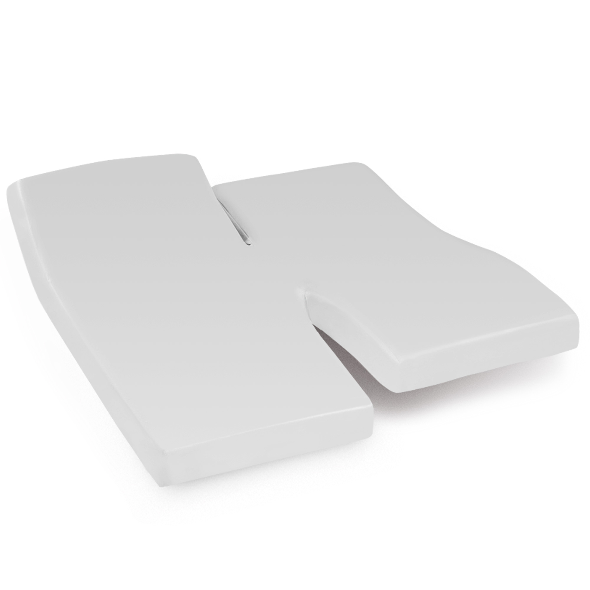 - Un drap housse duo avec une ouverture à la tête et au pied (TPR) spécialement conçu pour s'adapter sur les lits articulés électrique, lit mécanique ou lit médicalisé avec les deux côtés relevables.