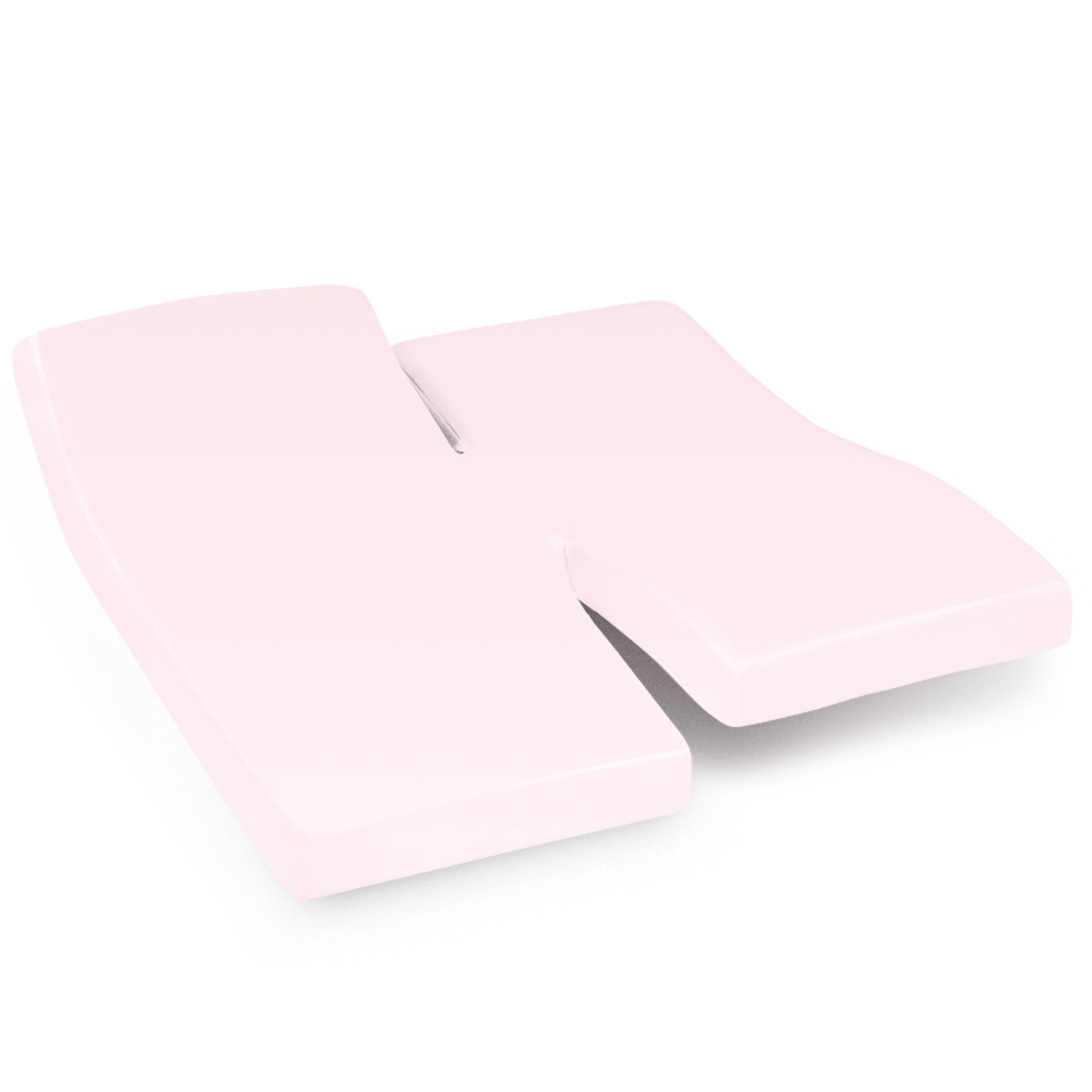 | Plus produit | Drap housse relaxation 2x100x190cm coloris uni Rose blush (TPR) Tête et pied relevable, collection ALTO 100% coton peigné tissage 57 fils très serrés doux au toucher et très résistant, traitement adoucissant Easycare - Confectionné en France |