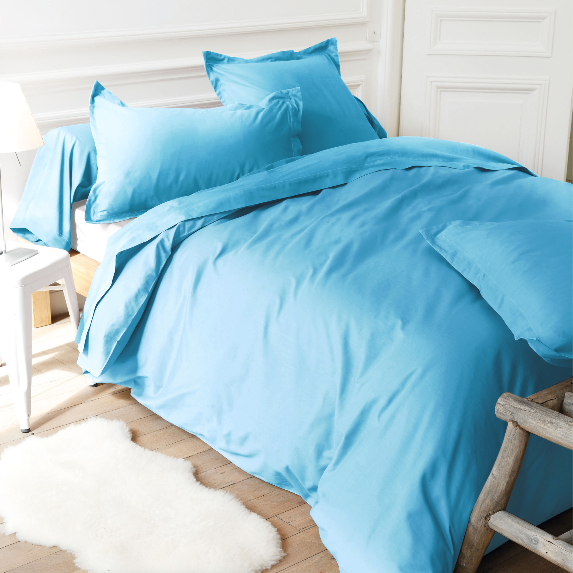 Drap housse uni 80x220 cm bonnet 40 cm coton ALTO bleu sky