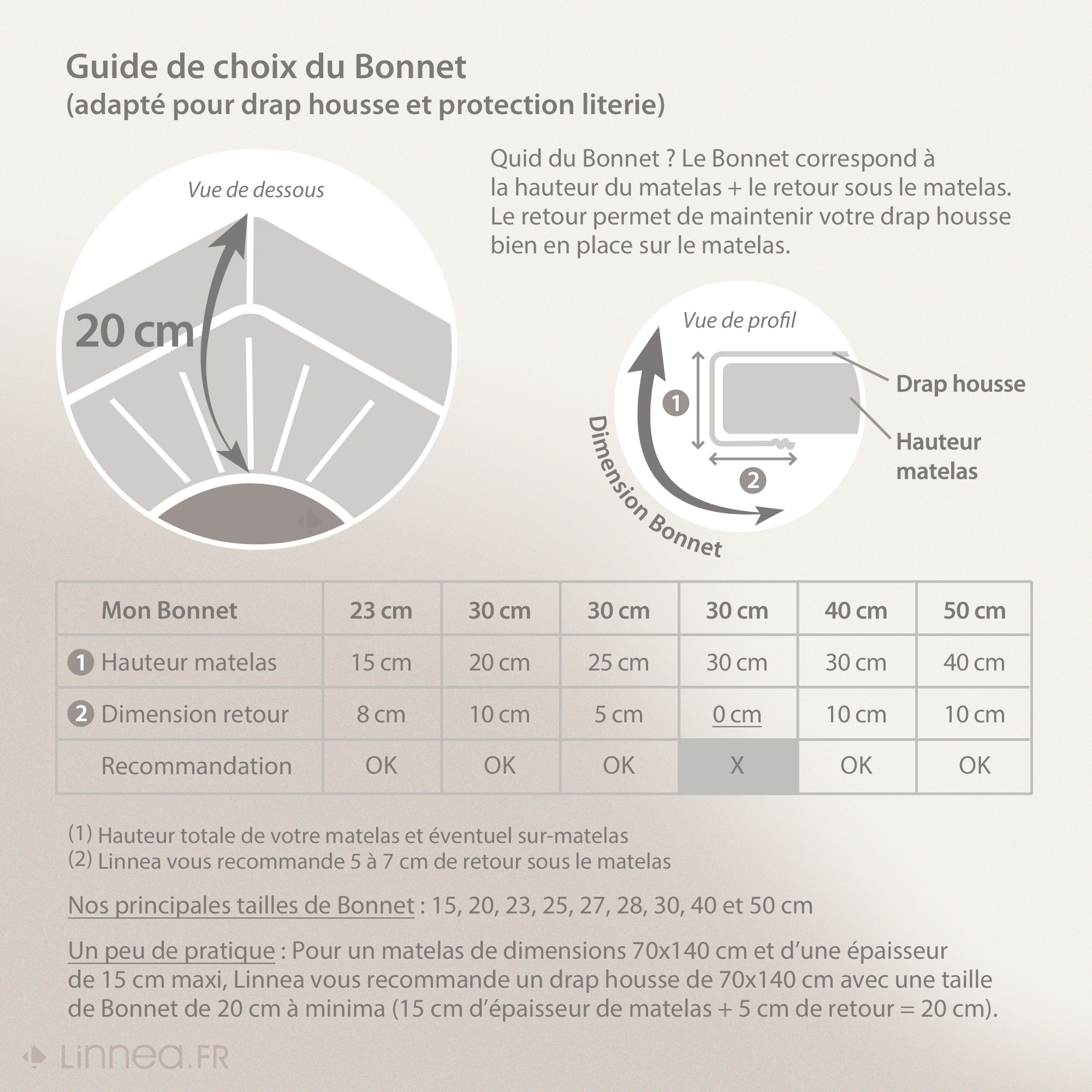 - Bonnet 20 cm pour matelas jusqu'à 17 cm