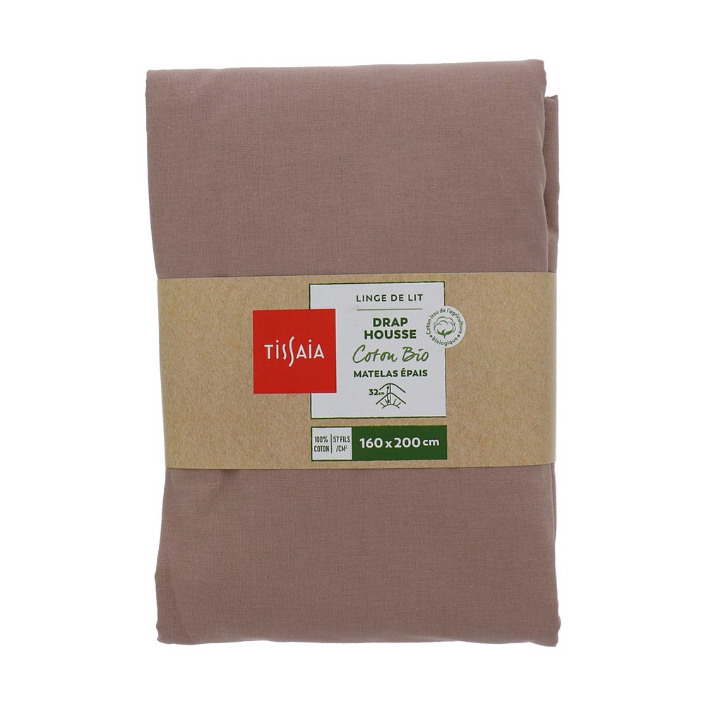 | Libellé | Drap housse uni grand bonnet coton Bio 160x200 Cm taupe TISSAIA |