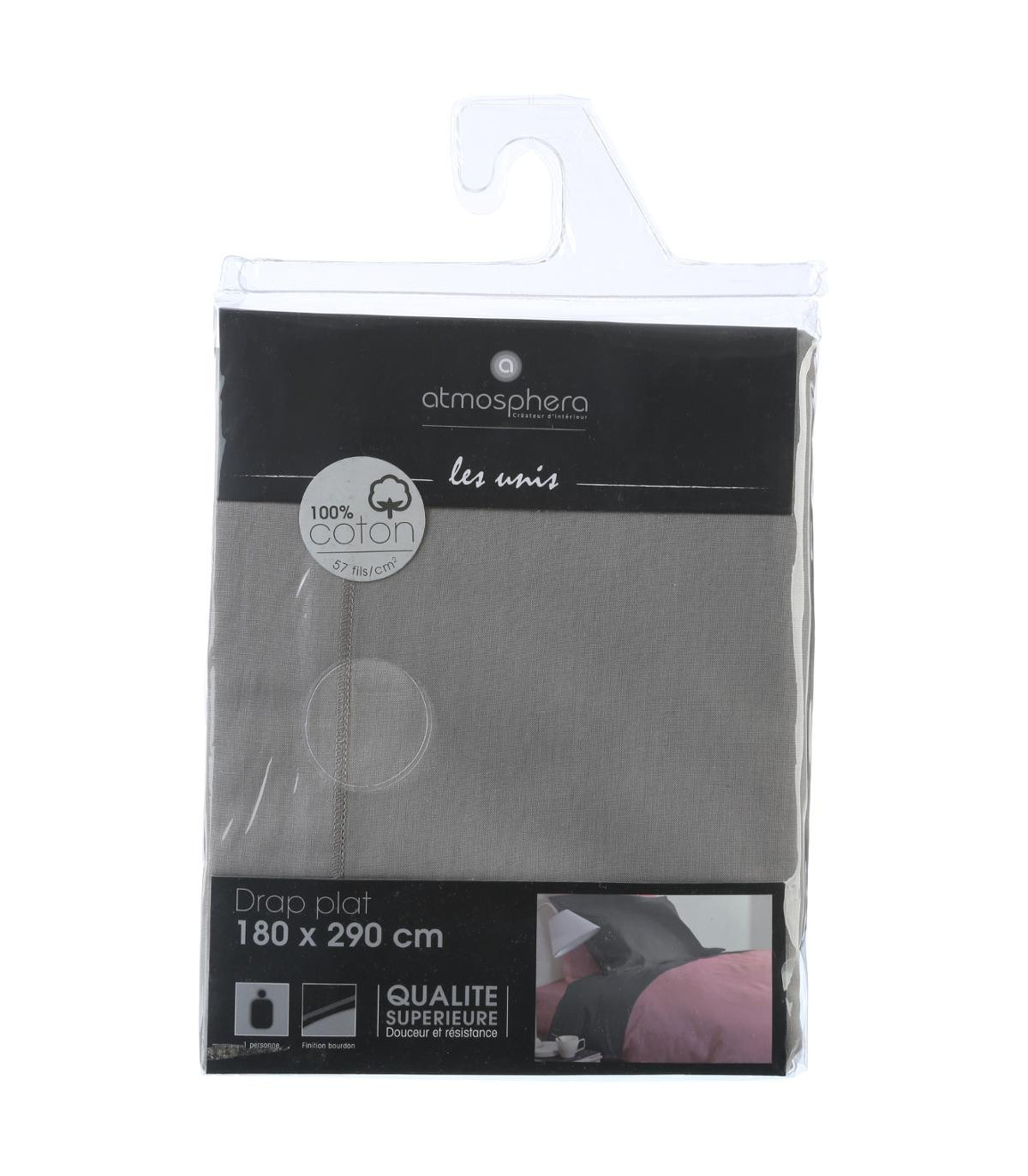 Drap Plat 1 Personne en Coton Gris 180 x 290 cm --