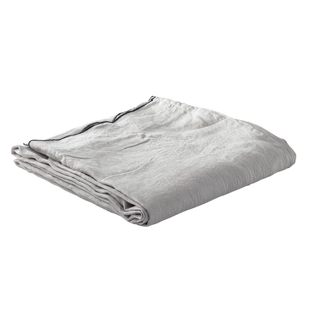 Drap plat 100% Lin Lavé Couleur Gris Craie,Taille 240 x 300 cm