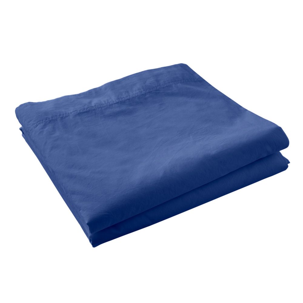 Drap plat 100% Percale de Coton Lavé 80 fils Couleur Majorelle,Taille 240 x 300 cm