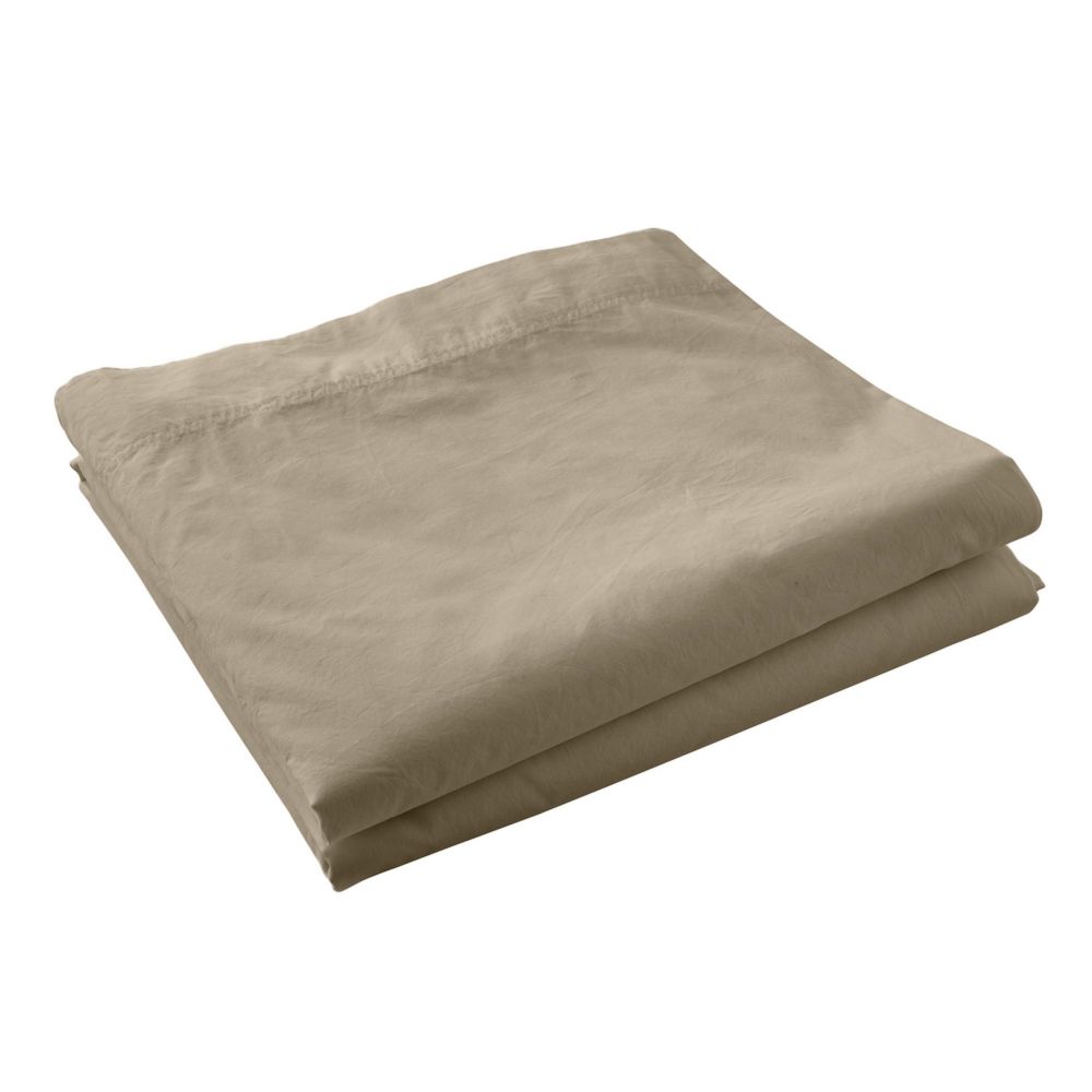 Drap plat 100% Percale de Coton Lavé 80 fils Couleur Sable,Taille 240 x 300 cm
