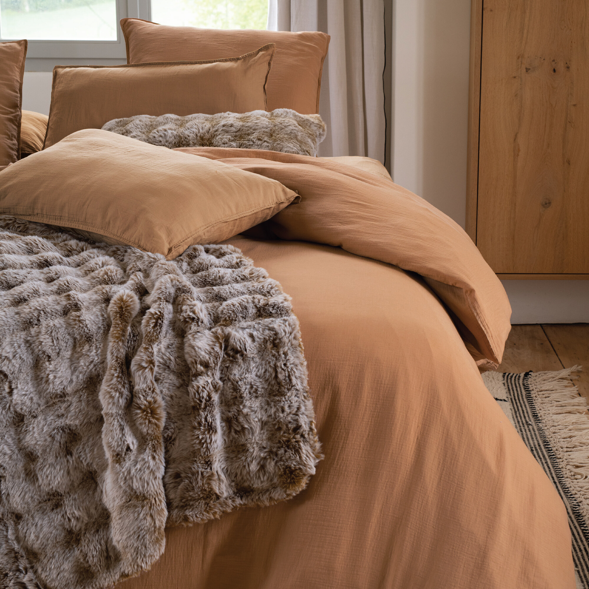 Fabriqué en mousseline de coton, ce drap plat offre à la fois douceur et respirabilité pour des nuits de sommeil paisible. Sa finition lavée froissée lui confère un charme rustique chic qui s'intègre parfaitement à tous les styles de décoration.