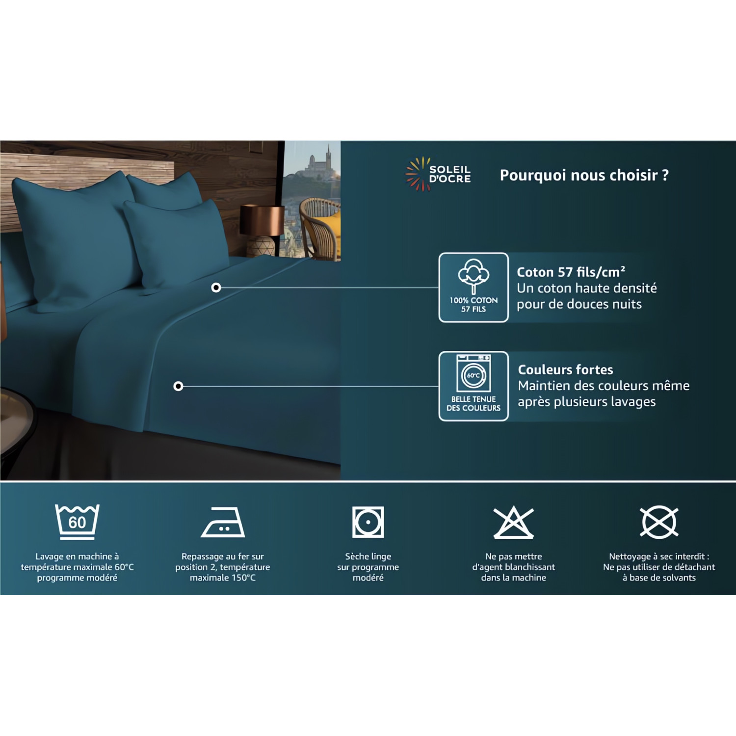 | Libellé | Drap plat en coton 57 fils UNI, par Soleil d'ocre |