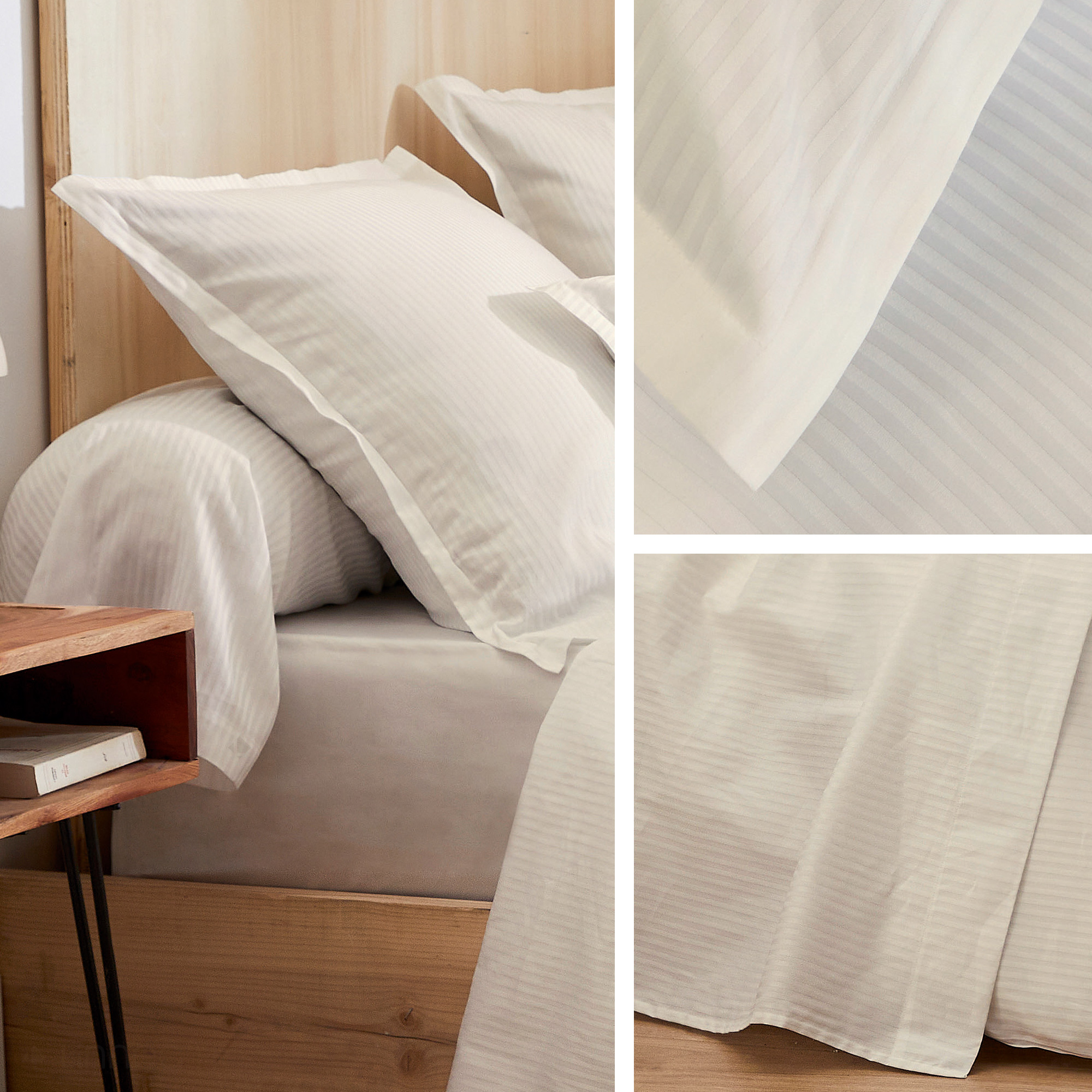 - Superbe qualité de tissu très souple et motif uni pour ce linge de lit en satin de coton.