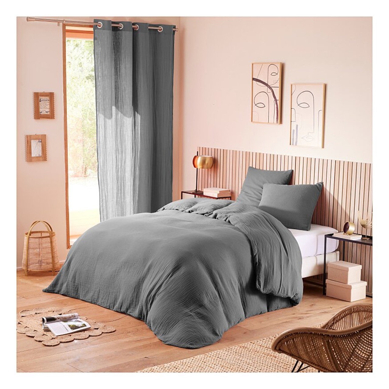 Draps Housse Gaze de coton anthracite - Alia - PROMO LINGE