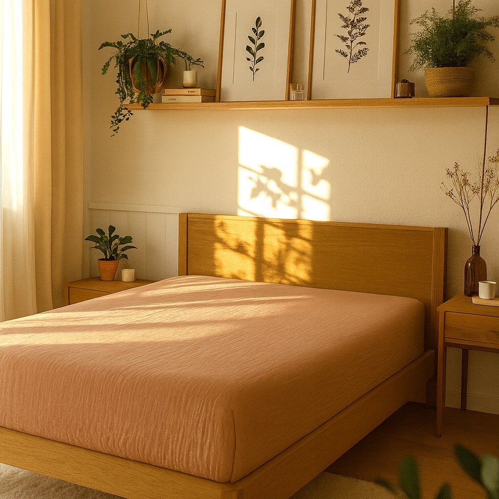 Draps Housse Gaze de coton Rose - Alia - PROMO LINGE