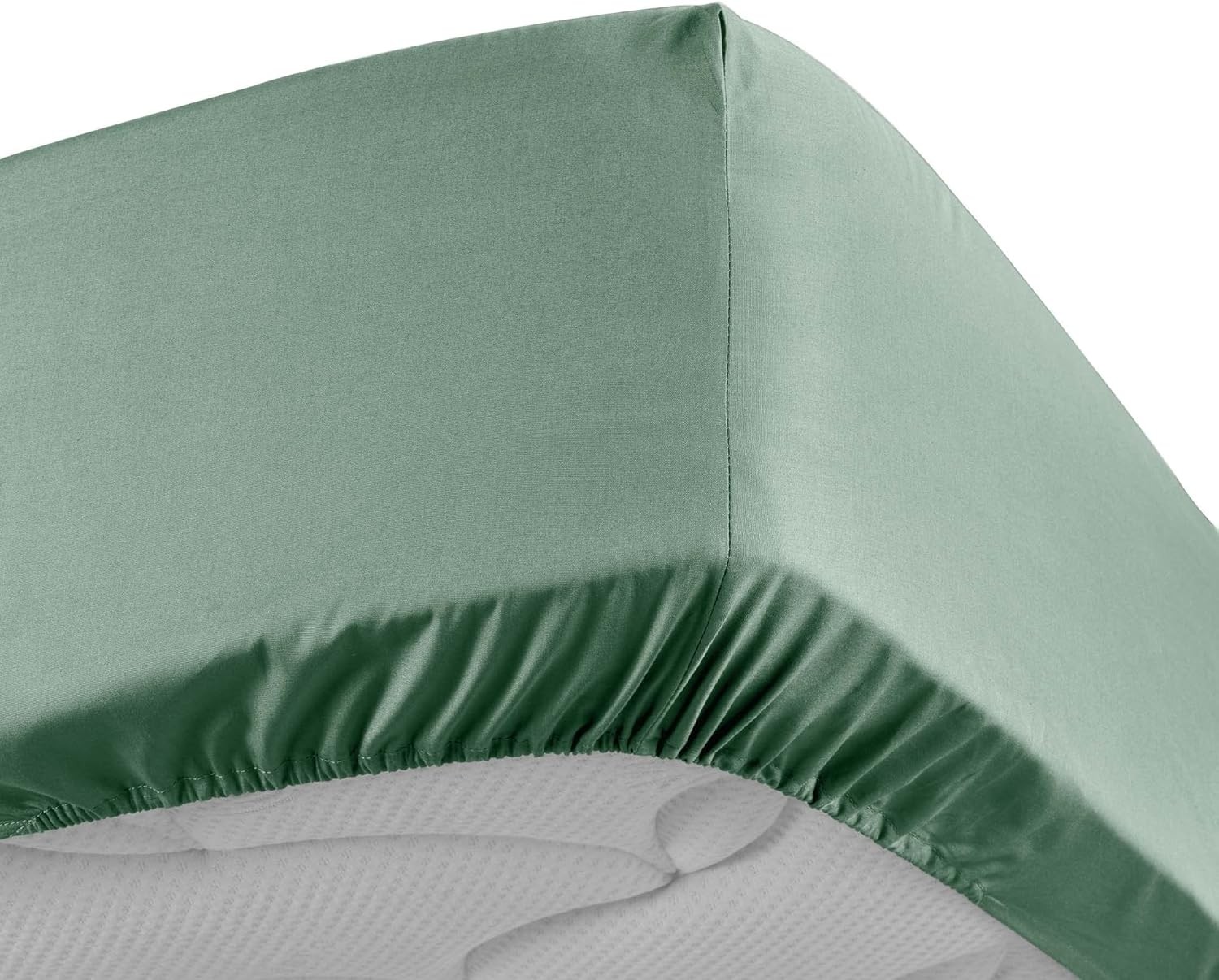 Draps Housse - PROMO LINGE - Percale de Coton 78fils - OEKO-TEX - Sauge