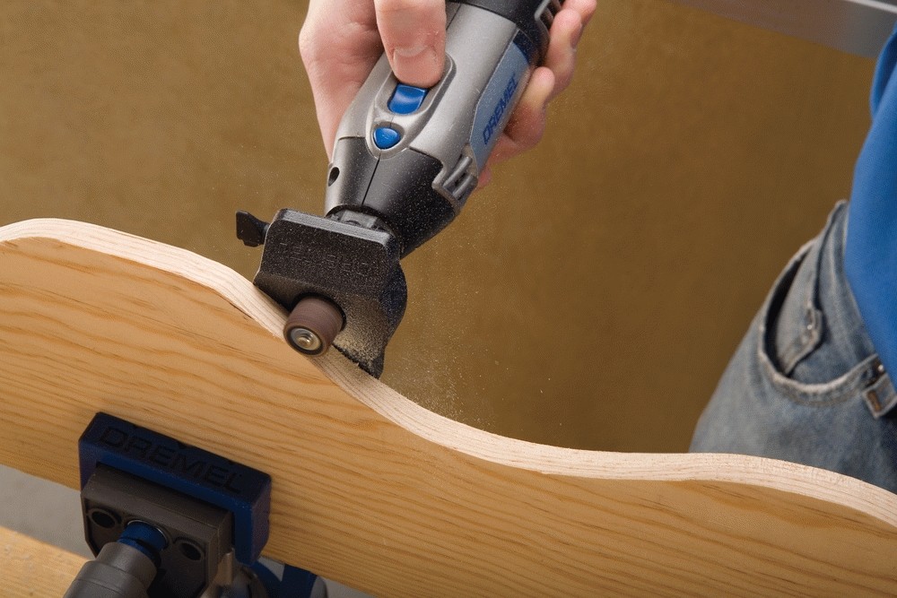 Pour quelles utilisations ? L’adaptation plate-forme de façonnage Dremel ajoute de la précision à votre travail en vous permettant d’effectuer des ponçages, affûtages et meulages à des angles de 45° ou 90° avec votre outil multi-usage Dremel. Parfait pour les ponçages de finition avec l’accessoire bande de ponçage grain 60 et mandrin (407) inclus. Idéal pour affûter vos équipements de jardin, notamment les cisailles, à un angle de 45° avec l’accessoire meule à rectifier (932) inclus. Comment l’utiliser ? Insérez et serrez l’accessoire fourni et vissez-le sans effort sur la plate-forme de façonnage. Réglez la profondeur jusqu’à 20 mm, serrez et créez des angles de 45°/90° parfaits en appliquant la plate-forme contre la pièce. Pour des résultats parfaits, tenez votre outil multi-usage à 2 mains et faites-le glisser lentement le long de la pièce jusqu’à ce que la plate-forme et le matériau soient alignés. Conseil : Utilisez en plus le Multi-Vise pour transformer votre outil multi-usage Dremel en une plate-forme de façonnage stationnaire.