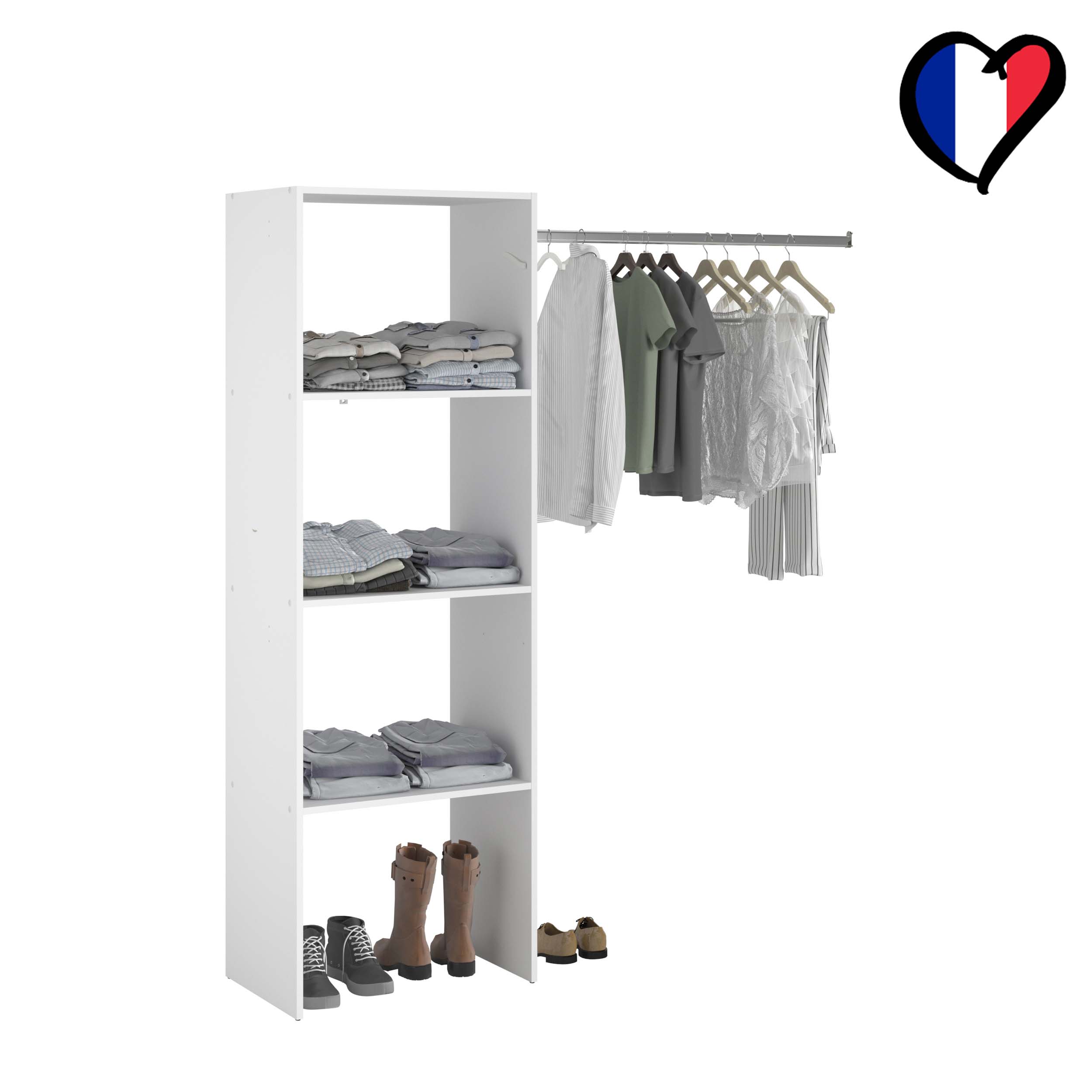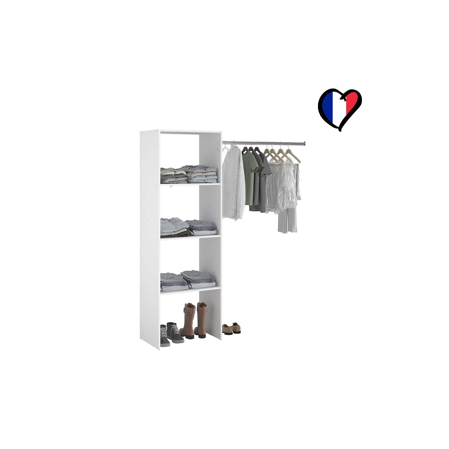 | Plus produit | Ce dressing s’adapte à tous les espaces et besoins de rangement. |