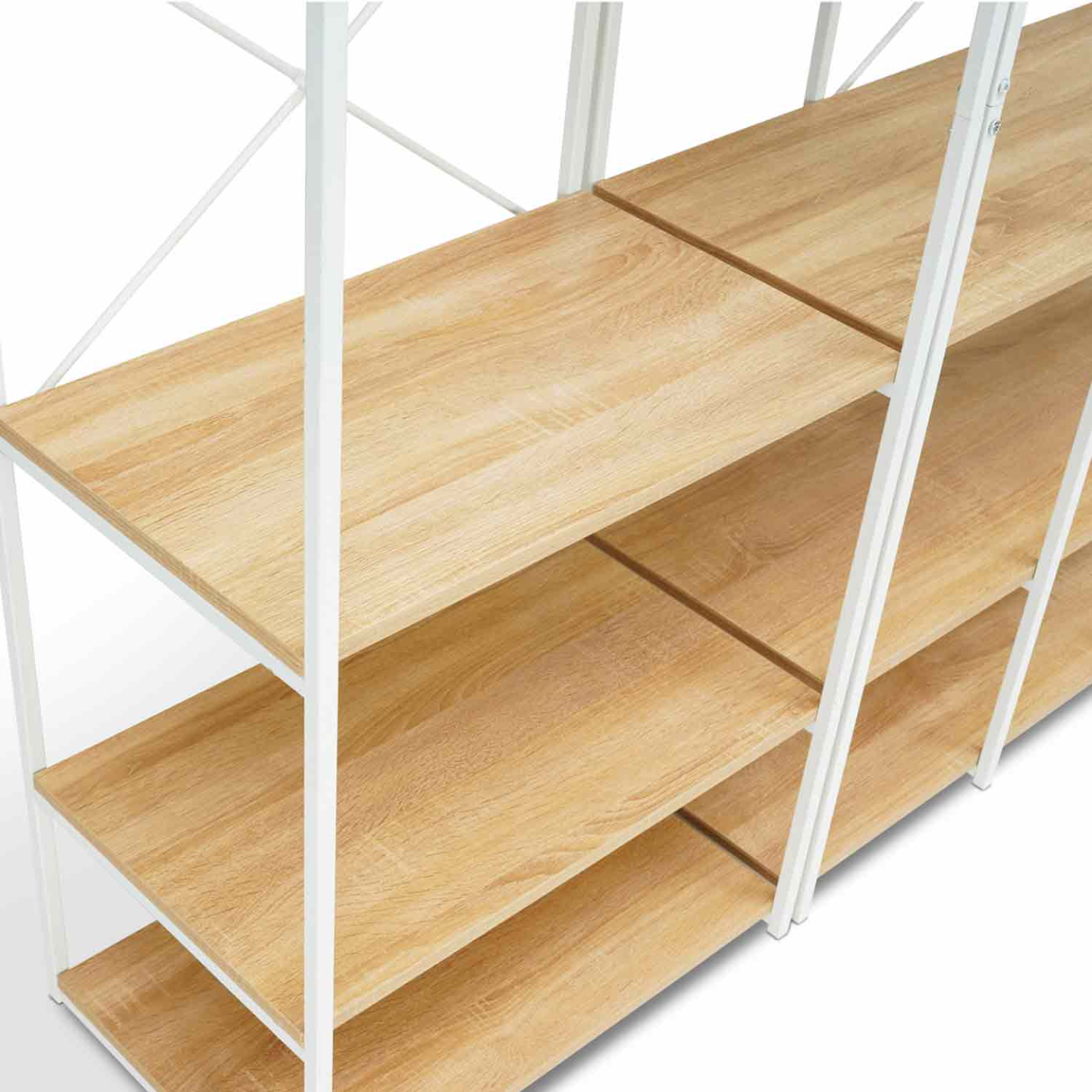 À la recherche d'un dressing modulable et fonctionnel ? Optez pour le dressing DETROIT de 150 cm de longueur au design industriel bois et métal blanc.Ce dressing modulable est composé de deux parties à associer. L'une des parties se compose de 5 étagères ainsi que d'une penderie de 90 cm de longueur. La seconde partie est quant à elle, composée de 3 étagères et d'une penderie. Positionnez-le selon l'emplacement et le design que vous souhaitez réaliser ! Créez un dressing tout en longueur ou installez-le en angle, à vous de choisir la meilleure combinaison pour votre intérieur.Sa structure en bois et métal blanc lui apporte stabilité et robustesse ainsi qu'un look moderne et authentique. Ce dressing se mariera parfaitement à votre décoration intérieure. Grâce à ce modèle XXL, vous bénéficiez de nombreux espaces de rangement pour mieux organiser vos vêtements, accessoires, bijoux. Les deux penderies vous permettront de pendre vos chemises, vestes, robes pour les avoir à portée de main sans être froissées. Rangez ainsi votre garde robe de façon pratique et accessible.Astucieux et design, voilà le dressing idéal pour votre intérieur. Alors n'hésitez-plus et optez pour le dressing modulable DETROIT XXL. Dimensions du dressing modulable DETROIT XXLDimensions globales hors tout : Longueur 150 cm x largeur 40 cm x Hauteur 167 cmDimensions d'une étagère latérale : L. 28 x l.40 cmDimensions de la partie penderie : L. 56 x l.40 x H.102 cmEtagères en particules de bois 1,5 cm d'épaisseurHauteur des étagères : 33 cm / étagère du bas : 23 cmColoris : bois et blancÀ monter soi-mêmeLe dressing modulable DETROIT est disponible en différents modèles : - Dressing modulable double penderie étagère DETROIT design industriel- Dressing modulable grande capacité DETROIT XXL design industriel- Dressing modulable DETROIT XXL design industrielRetrouvez toute notre sélection de dressings ainsi que notre collection industrielle sur notre boutique en ligne !