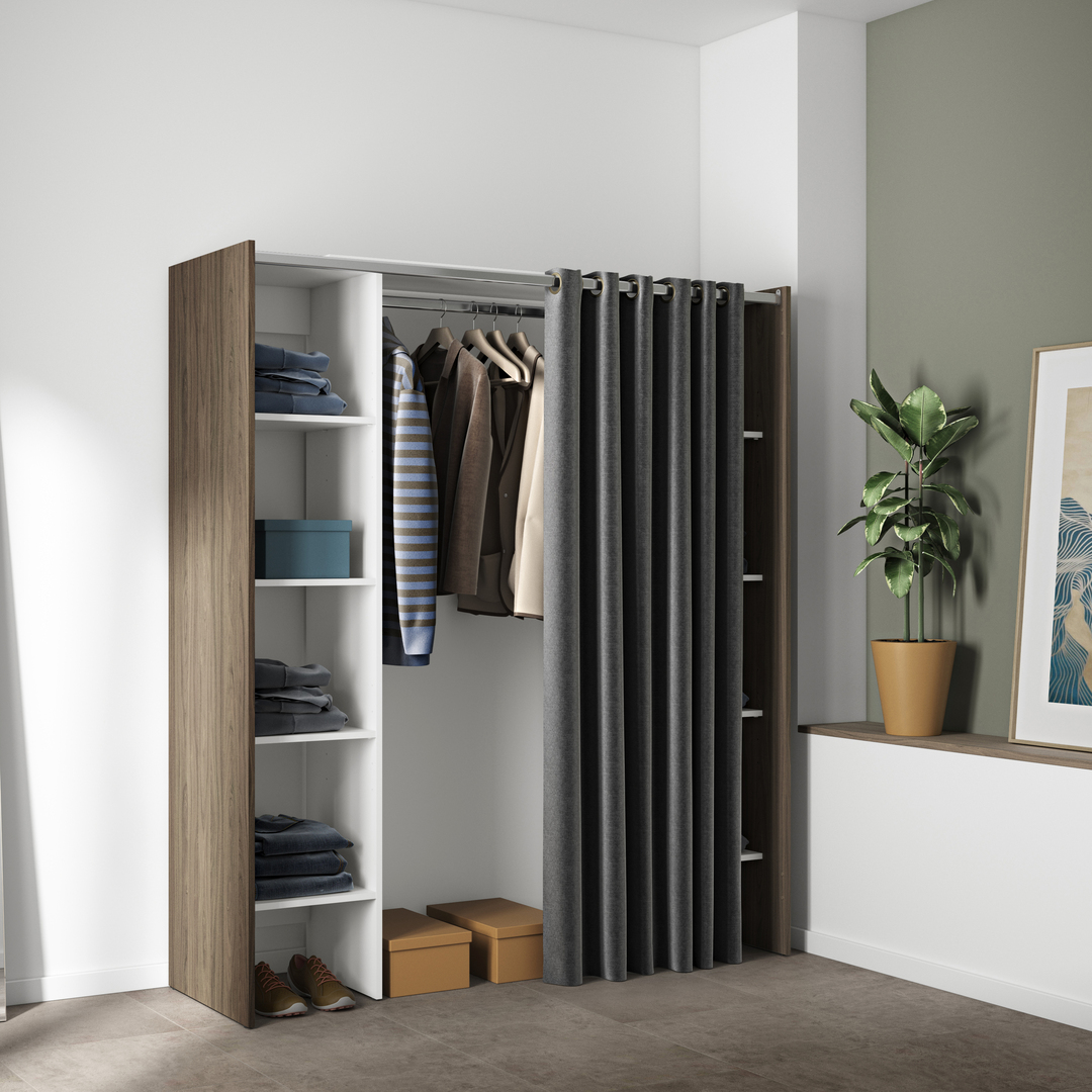 | Libellé | Dressing TOM deux colonnes - noyer et rideau gris |