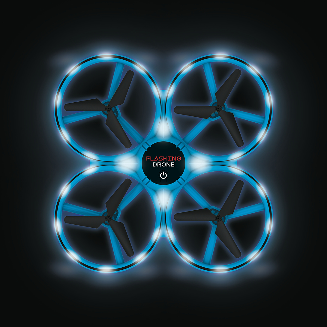 Flashing Drone Radiocommandé Lumineux Utilisation intérieure/extérieure 2.4 Ghz avec télécommande classique ou télécommande mouvement au poignet. Looping 360 et altitude stabilisée. Effets lumineux.