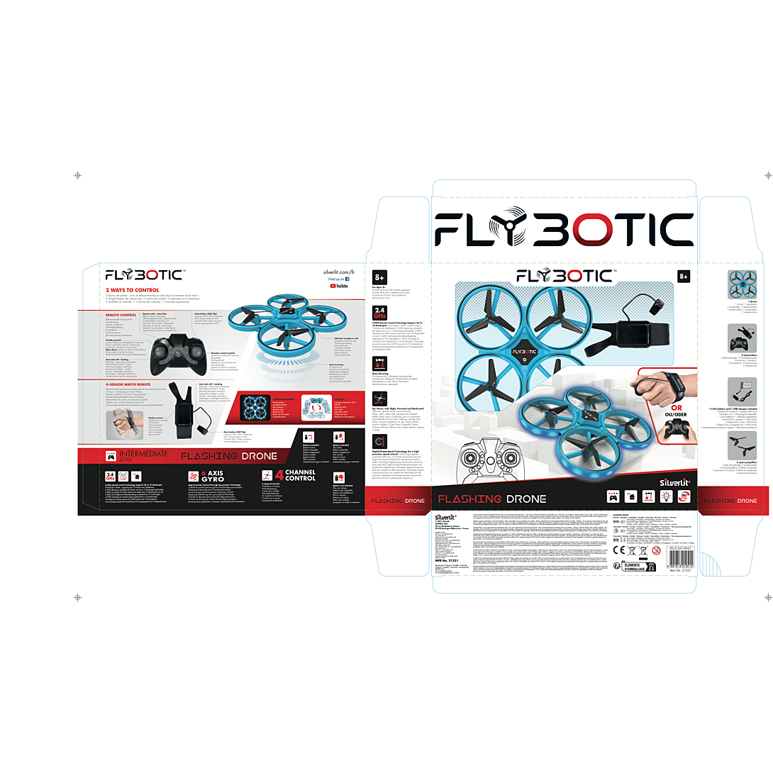 | Avertissements | Lire attentivement le manuel d’instructions avant utilisation. Utiliser uniquement sous la surveillance d’un adulte. Utiliser uniquement dans un environnement domestique (maison et jardin). Attention : ne convient pas aux enfants de moins de 8 ans. Toujours utiliser le jouet loin des yeux ou du visage. Ne pas lancer sur des personnes ou des animaux. Maintenir les mains, les cheveux et les vêtements amples à l’écart de l’hélice. Effectuer la recharge des accumulateurs sous la surveillance d’un adulte. Retirer les accumulateurs du jouet avant de les recharger. Ne pas court-circuiter les bornes d’une pile ou d’un accumulateur. Utiliser uniquement des piles et accumulateurs du type recommandé ou d’un type similaire. La batterie doit être insérée en respectant la polarité. Ne pas tenter de recharger des piles non rechargeables. Enlever les piles et accumulateurs usagés du jouet. Ne pas mélanger différents types de piles et accumulateurs ou des piles et accumulateurs neufs avec des usagés. |