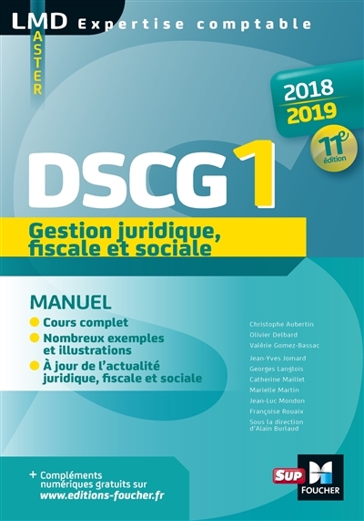 Ce manuel traite l'intégralité du programme du Diplôme Supérieur de Comptabilité et de Gestion (DSCG), épreuve n° 1 - Gestion juridique, fiscale et sociale. Cette nouvelle édition, profondément remaniée, propose une analyse de la législation illustrée de nombreux exemples jurisprudentiels ainsi que de nombreux renvois aux sources du droit. Diverses branches du droit sont concernées : le droit civil, le droit pénal, le droit des sociétés, le droit commercial, le droit social, le droit fiscal, et de plus en plus le droit communautaire et international. Un ouvrage complet, rédigé par un collectif d'auteurs spécialistes des différents domaines traités.