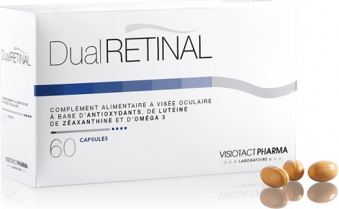 La formule DualRetinal est élaborée par le département recherche et développement du laboratoire Visiotact Pharma, expert en micronutrition oculaire. DualRetinal contribue, via son activité Dual, à lutter contre le vieillissement oculaire, situation pouvant apparaitre avec l'âge et en cas d'alimentation insuffisante ou déséquilibrée, et participe à la récupération fonctionnelle visuelle. DualRetinal est un complément alimentaire à visée ophtalmique dont la formule intègre les trois classes d'actifs validés scientifiquement et cliniquement dans la lutte contre le vieillissement rétinien : - Oméga 3 - Lutéine et Zéaxanthine - Vitamines et Minéraux Ces trois classes d'actifs sont nécessaires à la protection de la rétine contre les effets oxydants dus : - A la consommation excessive en oxygène de l'oeil - A l'exposition à la lumière du soleil (rayonnement ultra-violet) - A la carence en vitamines et minéraux antioxydants due à l'âge. Ces trois classes d'actifs ont largement démontré leur rôle fondamental dans le bon fonctionnement de la rétine (zone de l'oeil responsable de la vision fine). Les Oméga 3 et plus particulièrement le sous-groupe des DHA (acide docosahexaènoïque), sont un constituant majeur des photorécepteurs de la rétine. Ils permettent le renouvellement ainsi que la protection des photorécepteurs, et assurent un fonctionnement optimum de la vision.