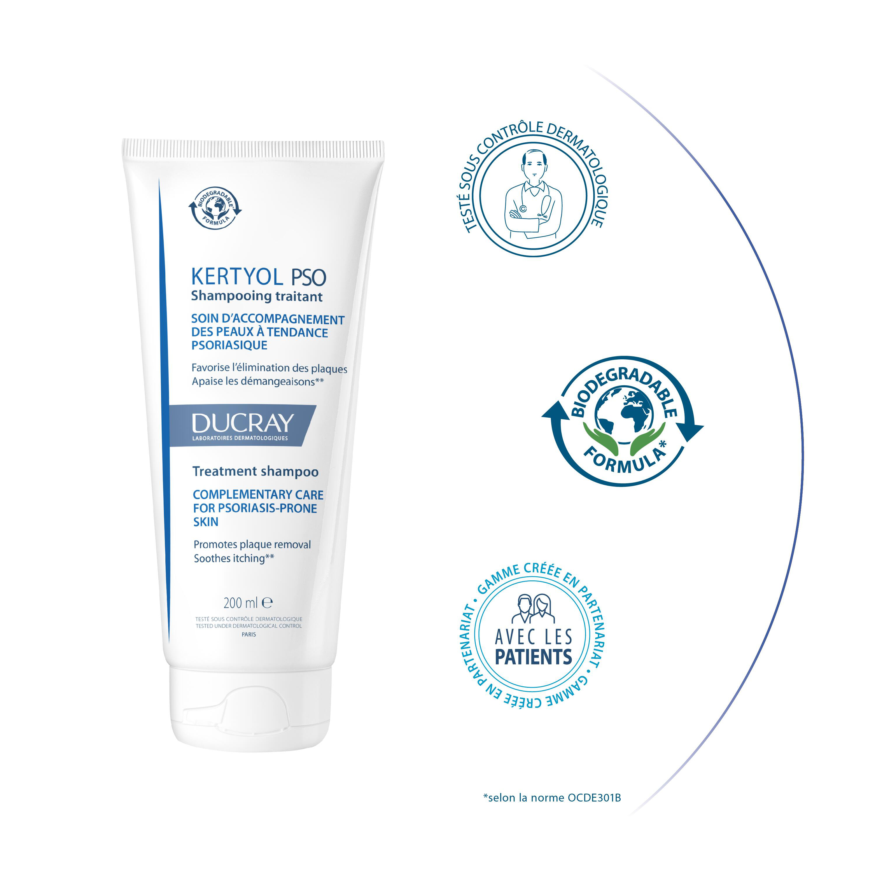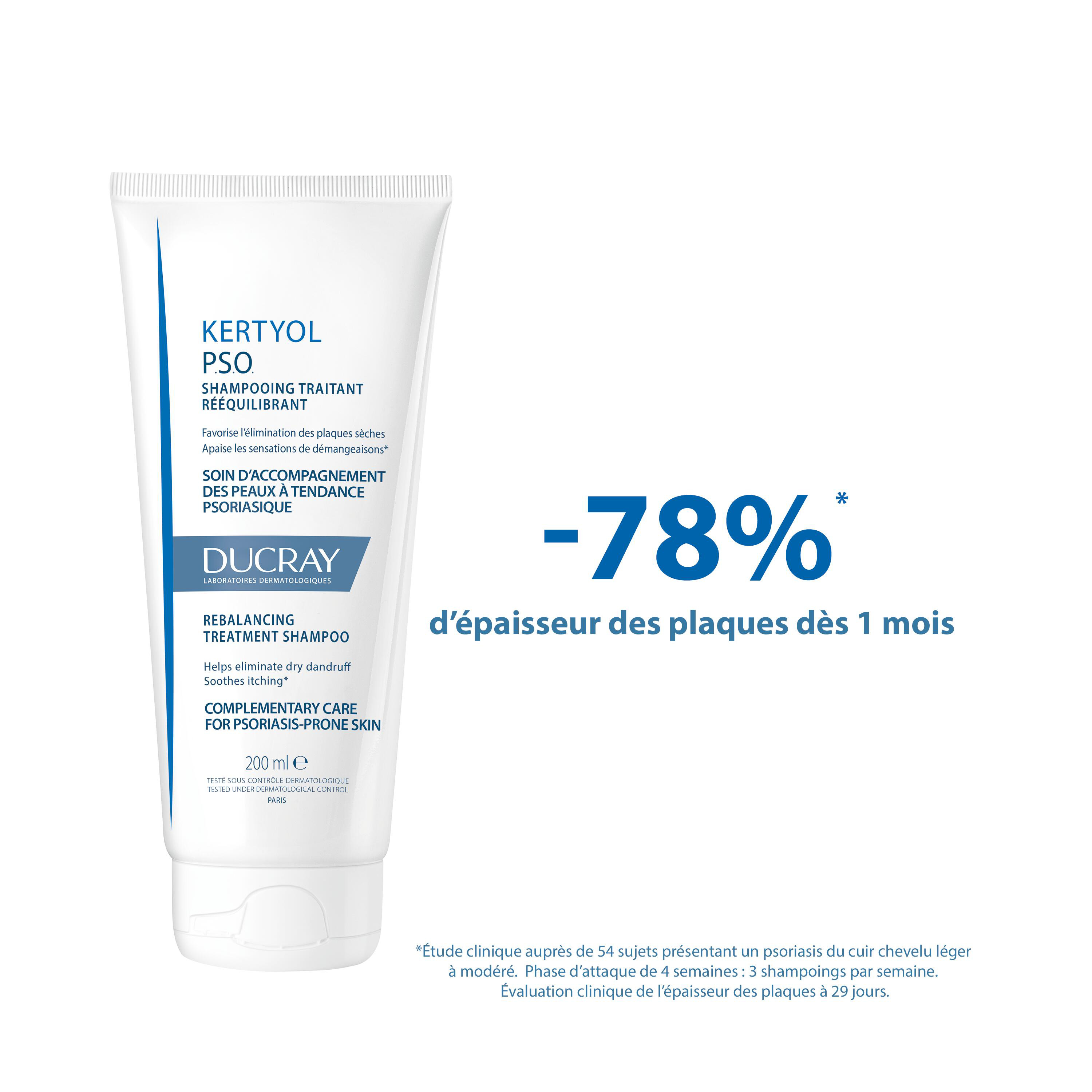 Le shampooing traitant KERTYOL PSO est un soin d’accompagnement des cuirs chevelus à tendance psoriasique. Il s’utilise dès l'apparition des plaques qu’en entretien. Il apaise le cuir chevelu, favorise la disparition des plaques et en limite la réapparition